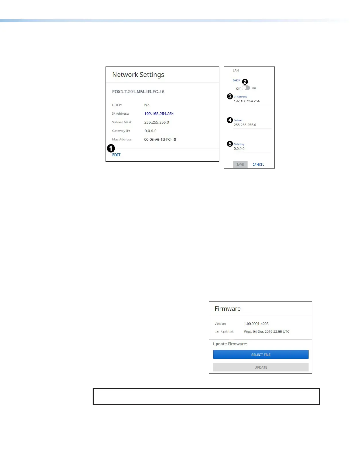it was last updated. Update the firmware on the FOX3T201 from this panel (see Software/