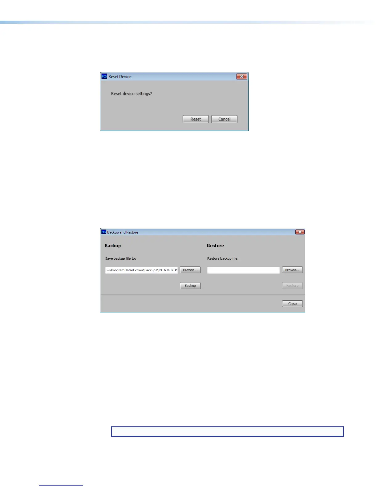 Figure 29. Backup and Restore Dialog Box