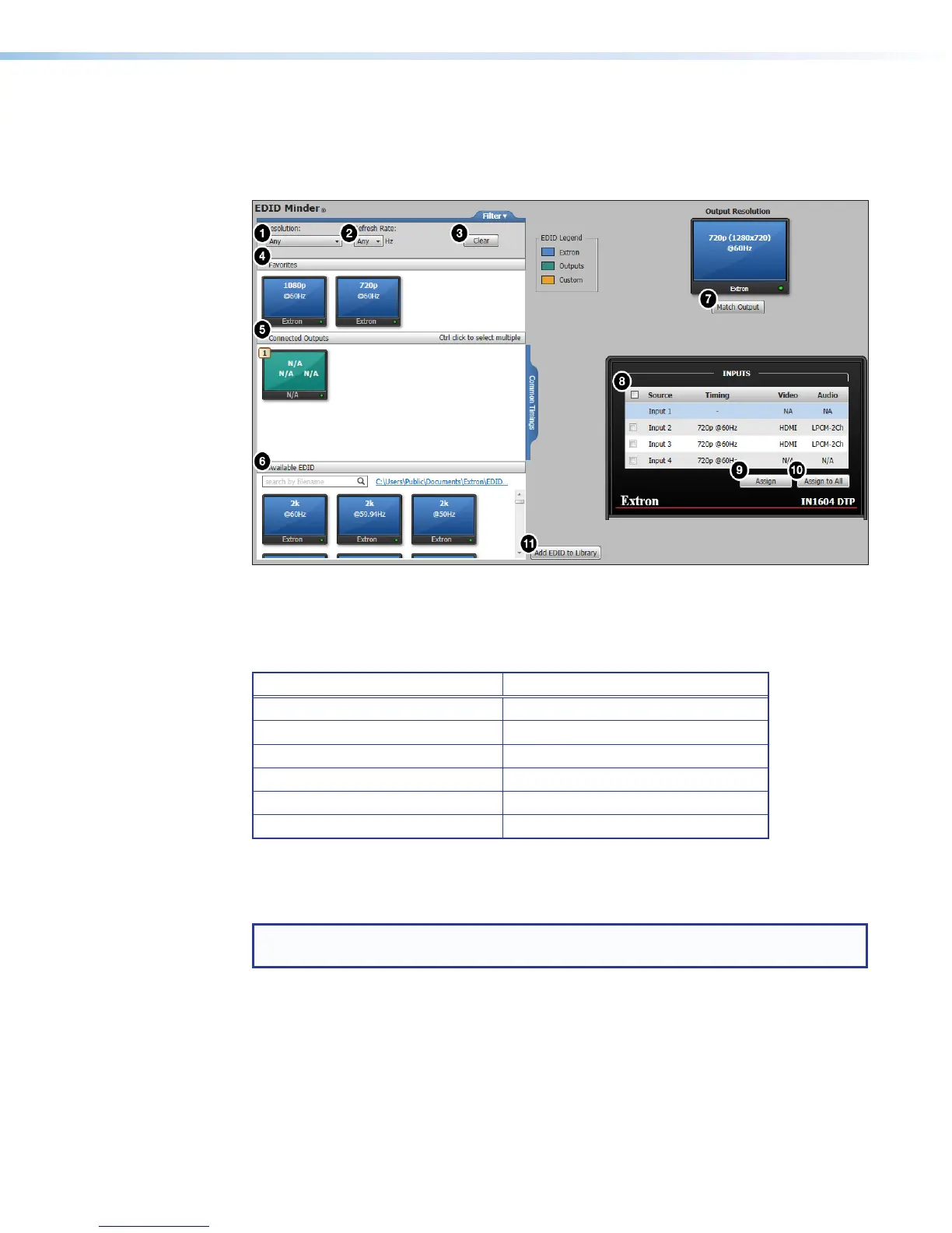 The EDID properties currently assigned to each input are displayed in the table of inputs.