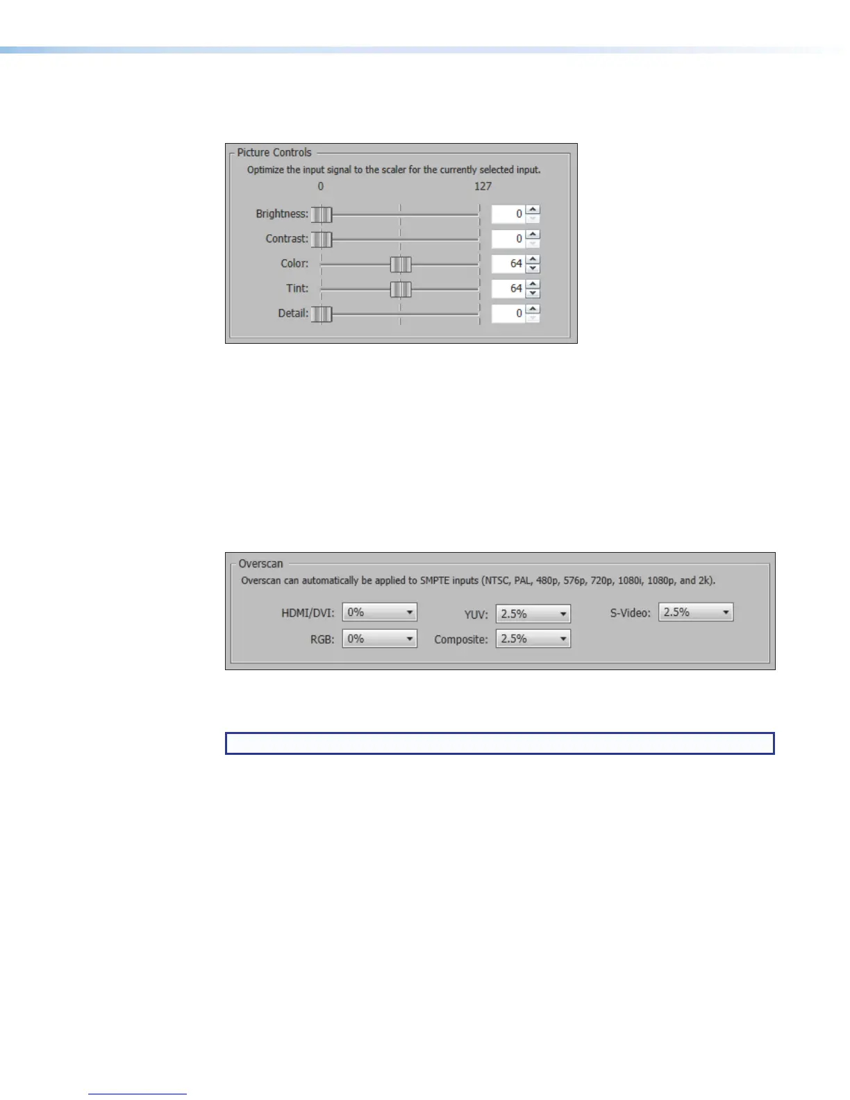 NOTE: Setting a value of 0% disables overscan for the corresponding input format.