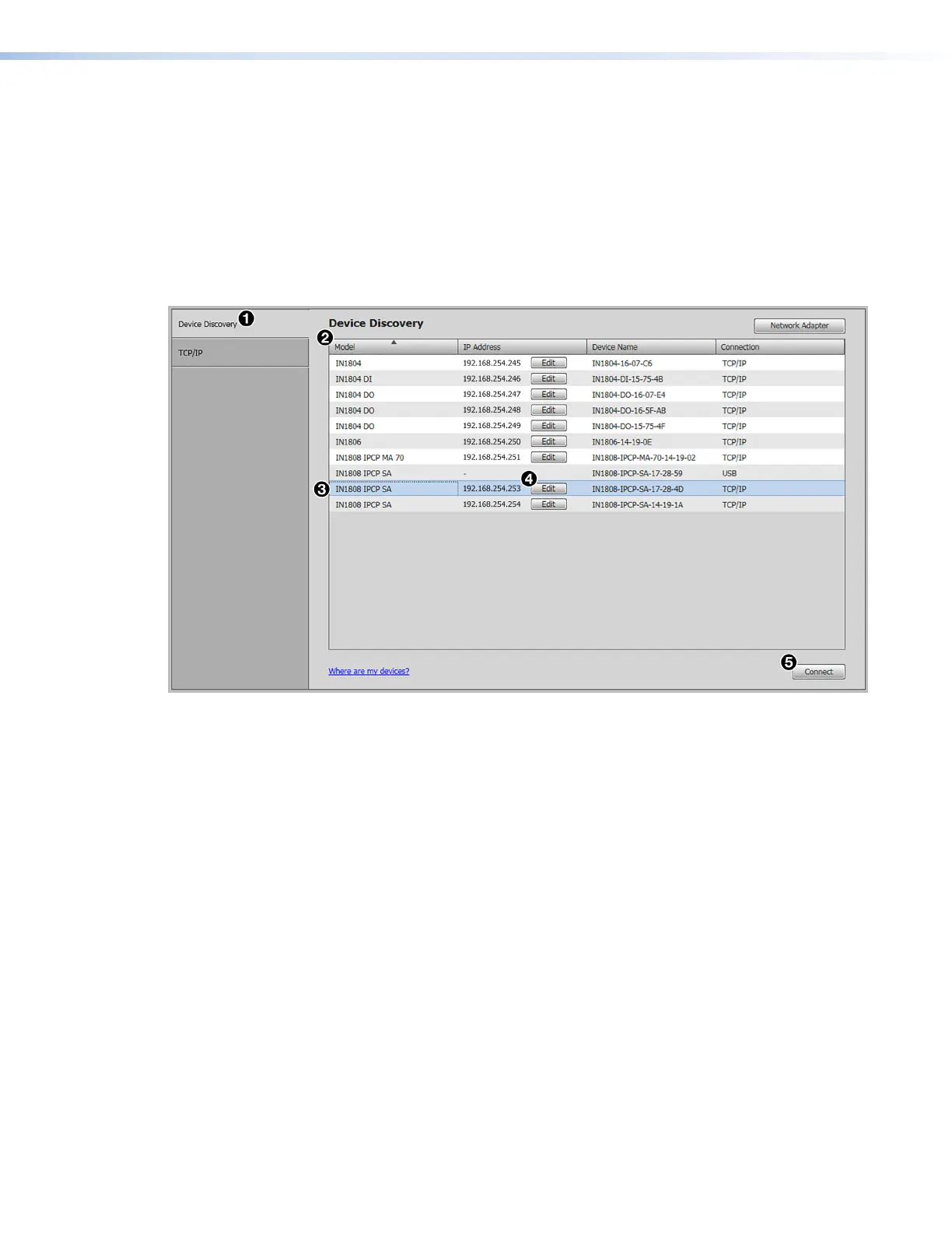 Device Discovery Panel