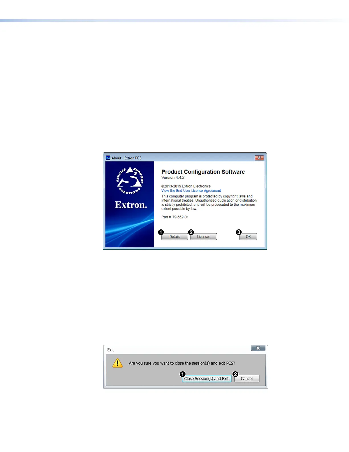 1. From the Software menu, select About Extron PCS. The About - Extron PCS dialog