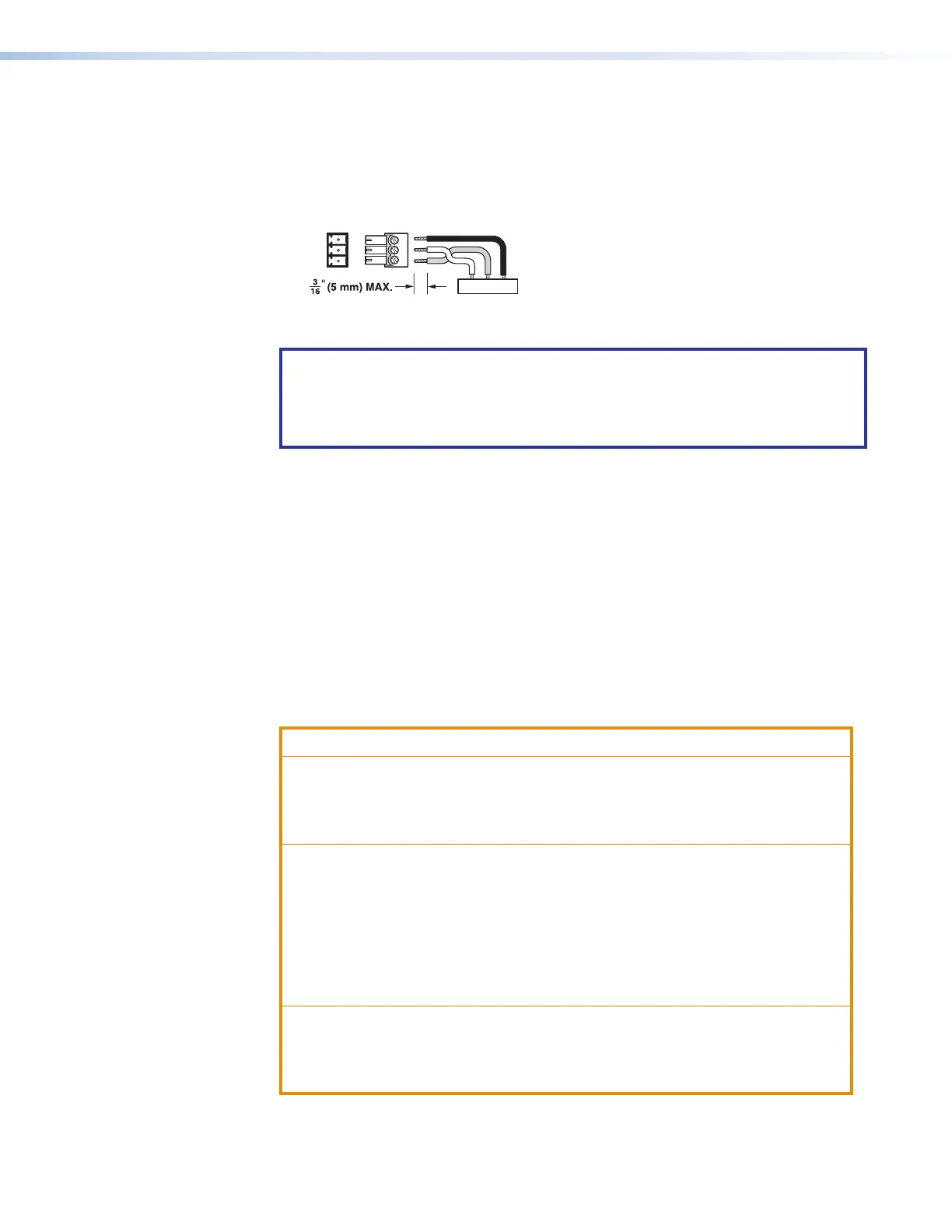 length is 3/16 inch (5 mm). If the exposed portion is longer, the wires may