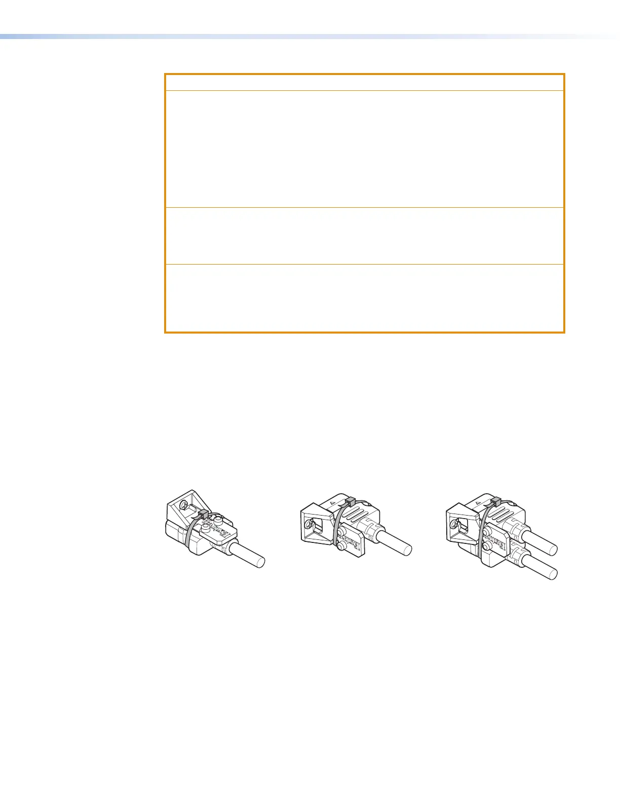 • Do not tin the wires. Tinned wires are not as secure in the captive screw terminals