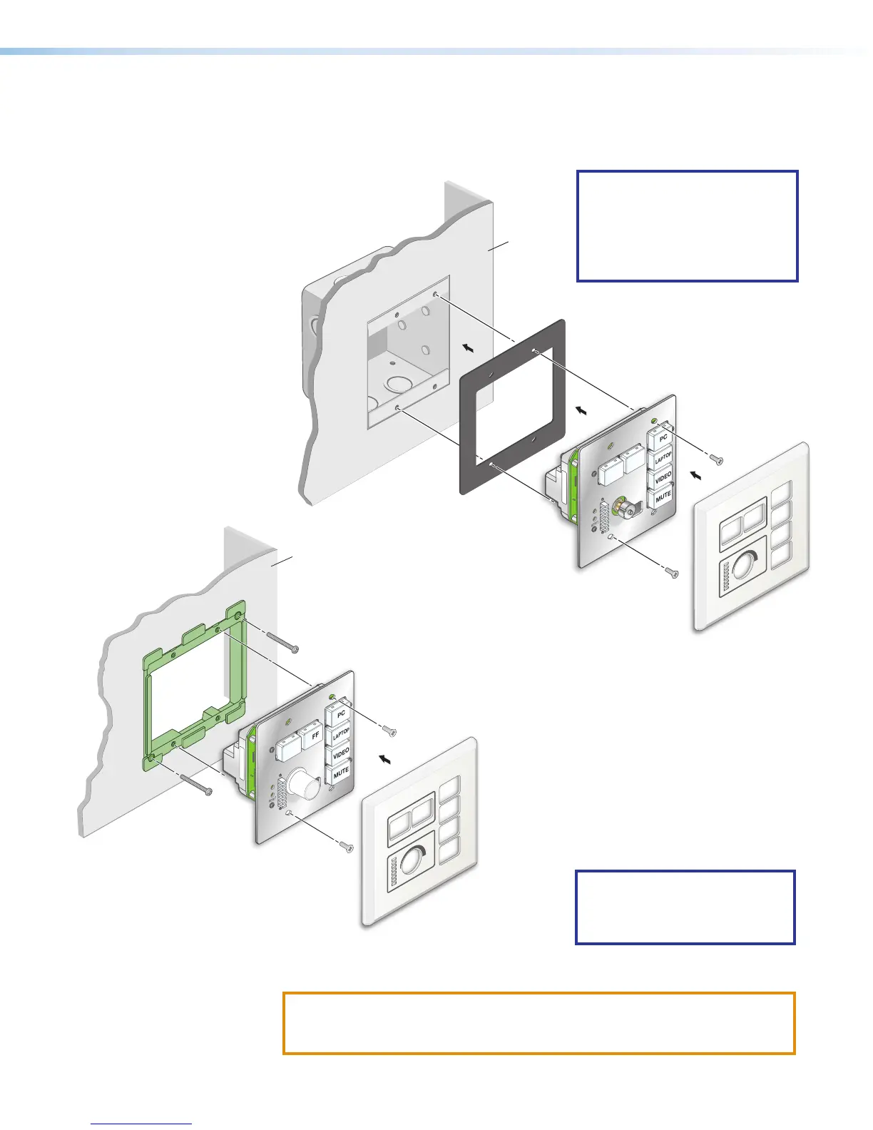 using a mud ring), and into the corresponding threaded holes in the box or mud ring