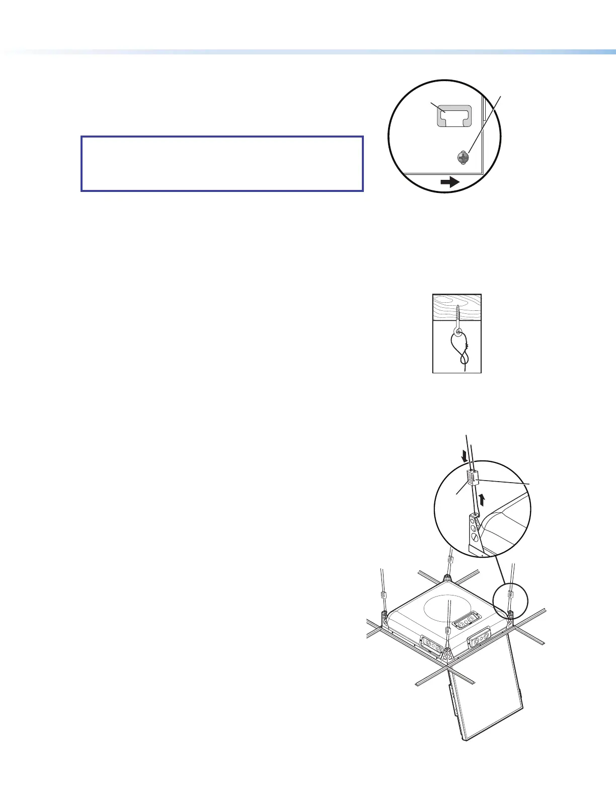 Step 2 — Remove ceiling tile and install suspension cables.