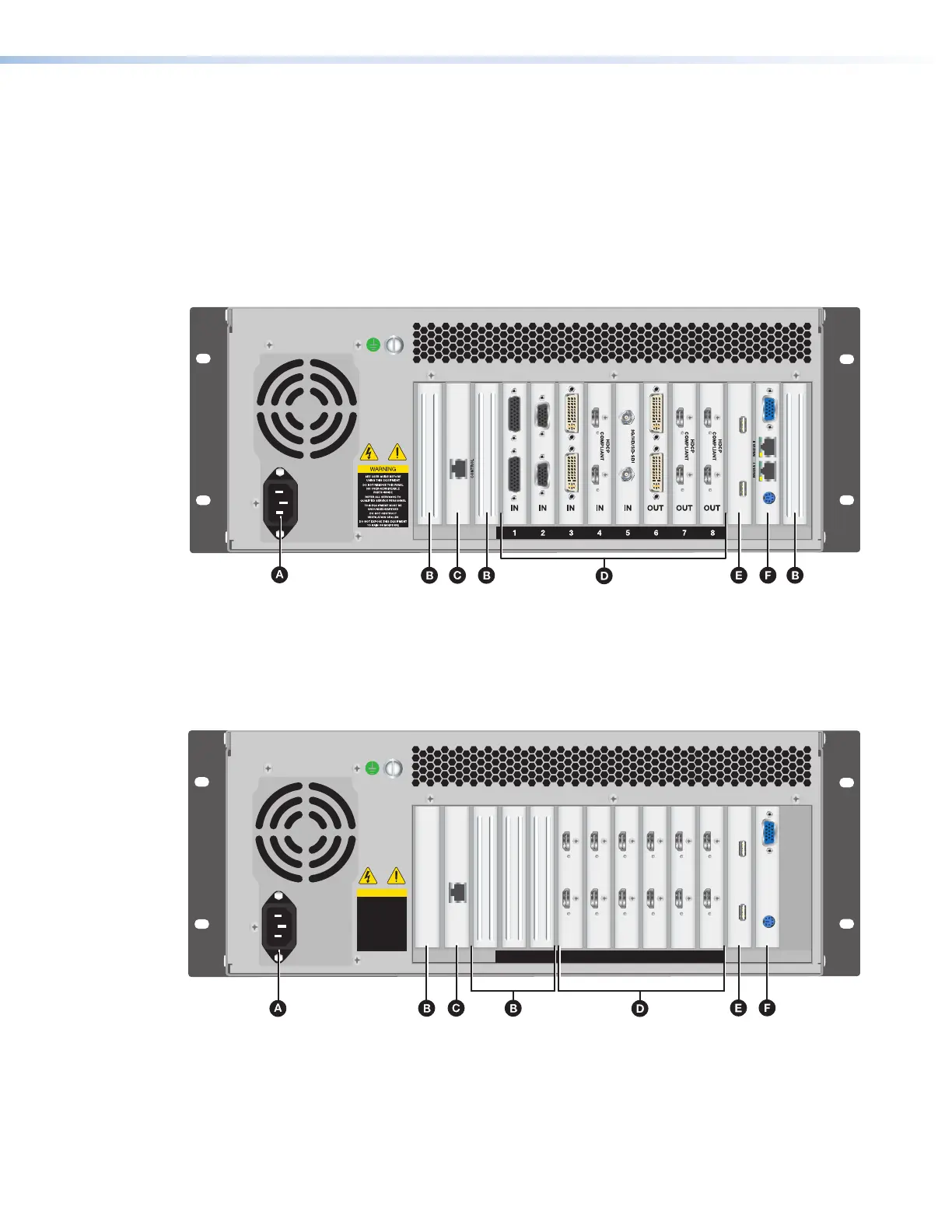 • Quantum Connect 82 and 84 — Have eight slots that contain HDMI input and