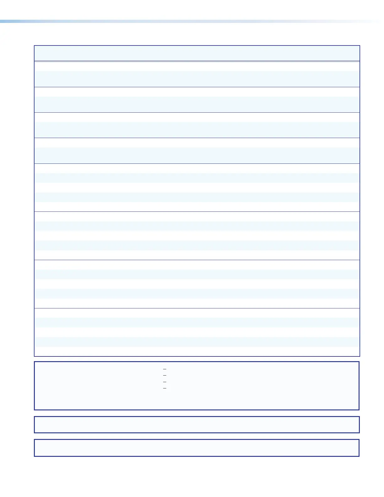 Command and Response Tables (continued)