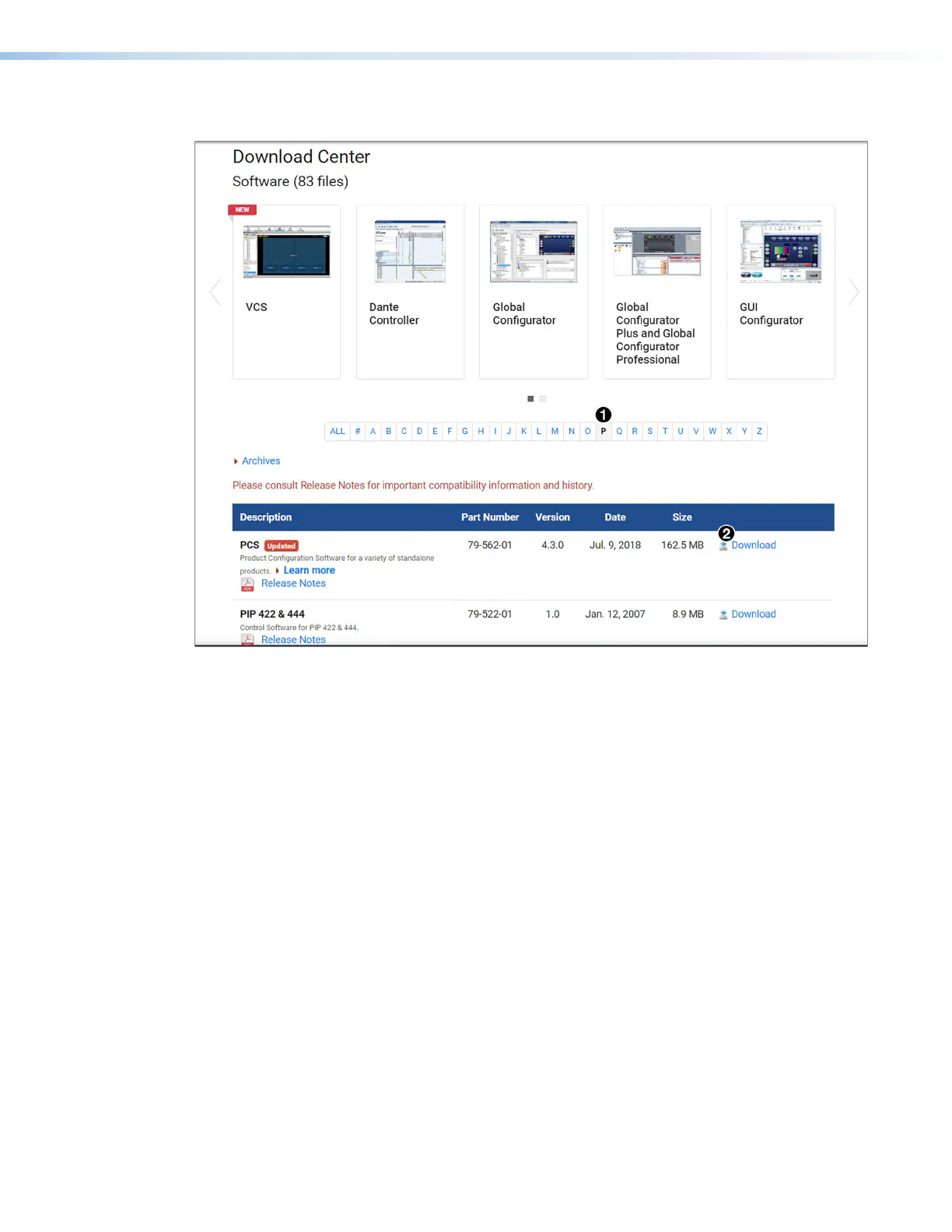Figure 18. PCS Link on Download Center Screen