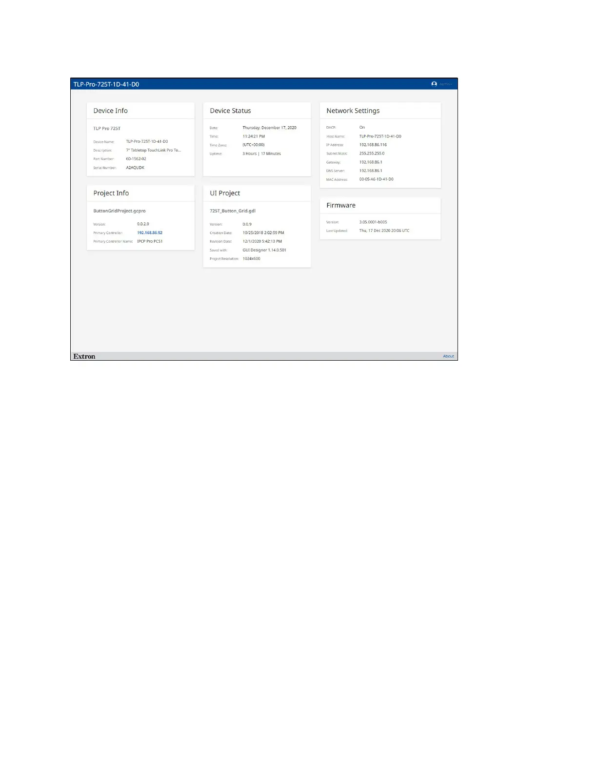 The web page opens. Figure 25 shows the TLP Pro 725T web page. The web pages for the other touchpanels are
