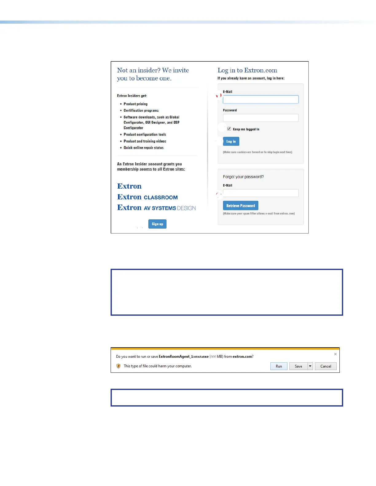 5. Enter the E-Mail address and Password associated with your Extron website account