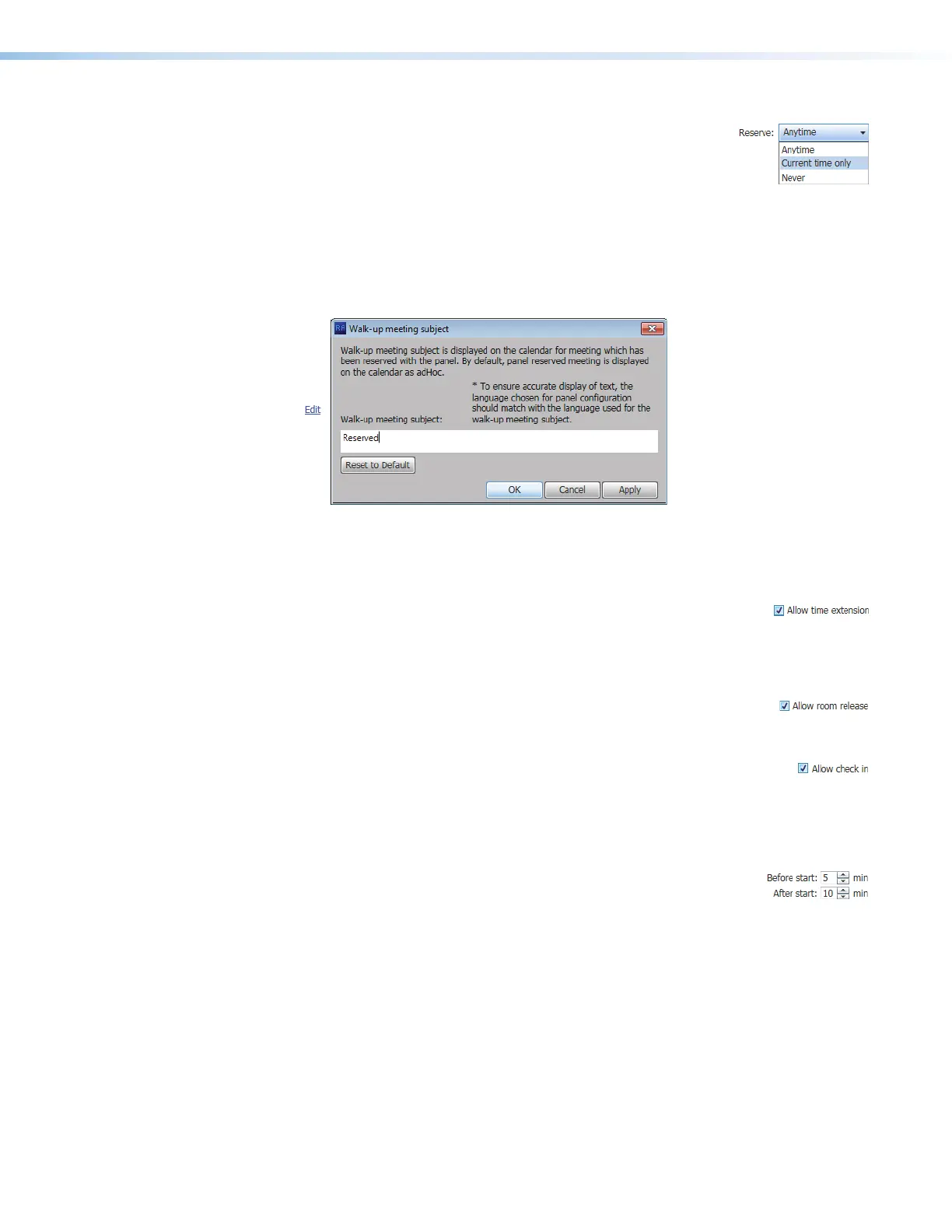 on the panel. Extend until extends the reservation of a room in half-hour increments