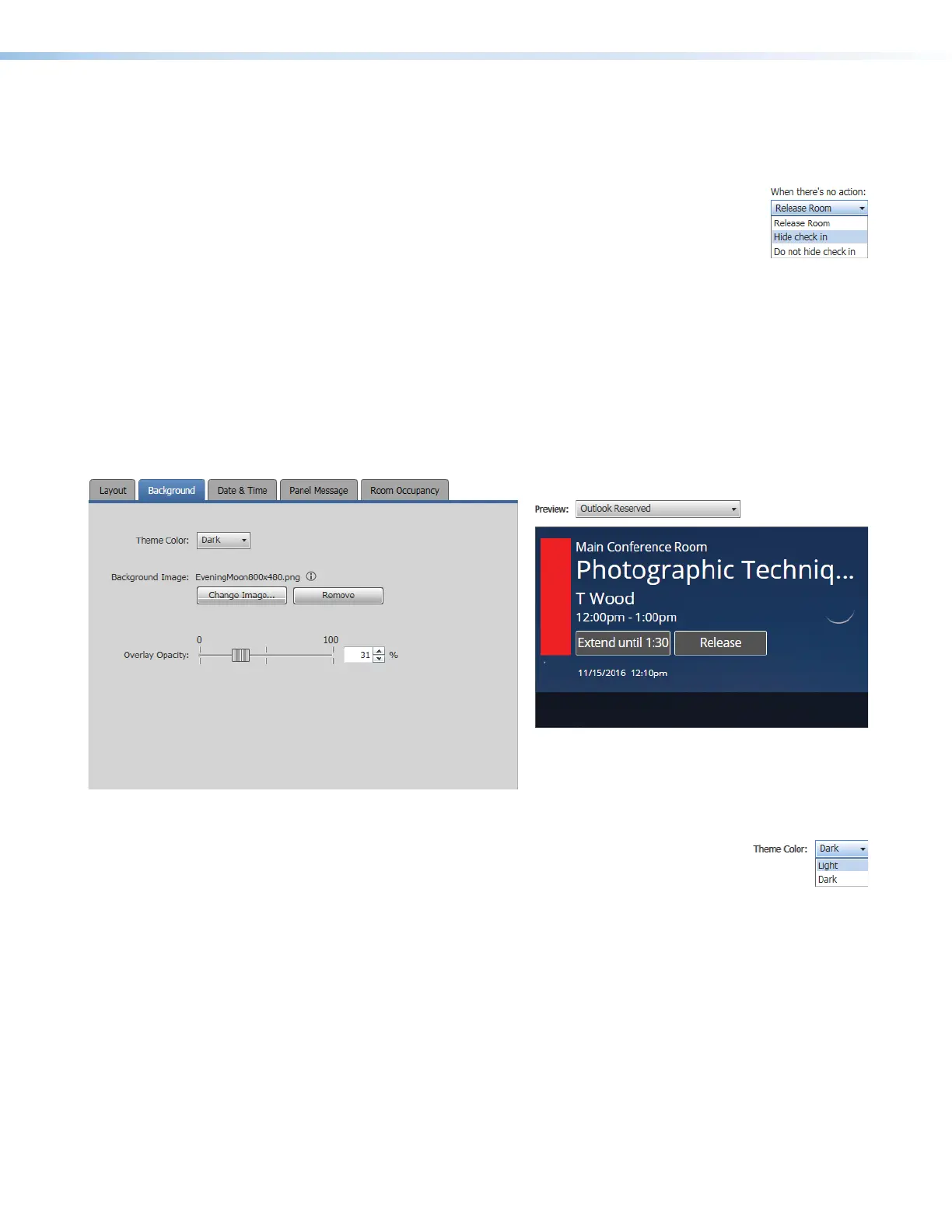 • The color theme (dark or light) of the panel display: