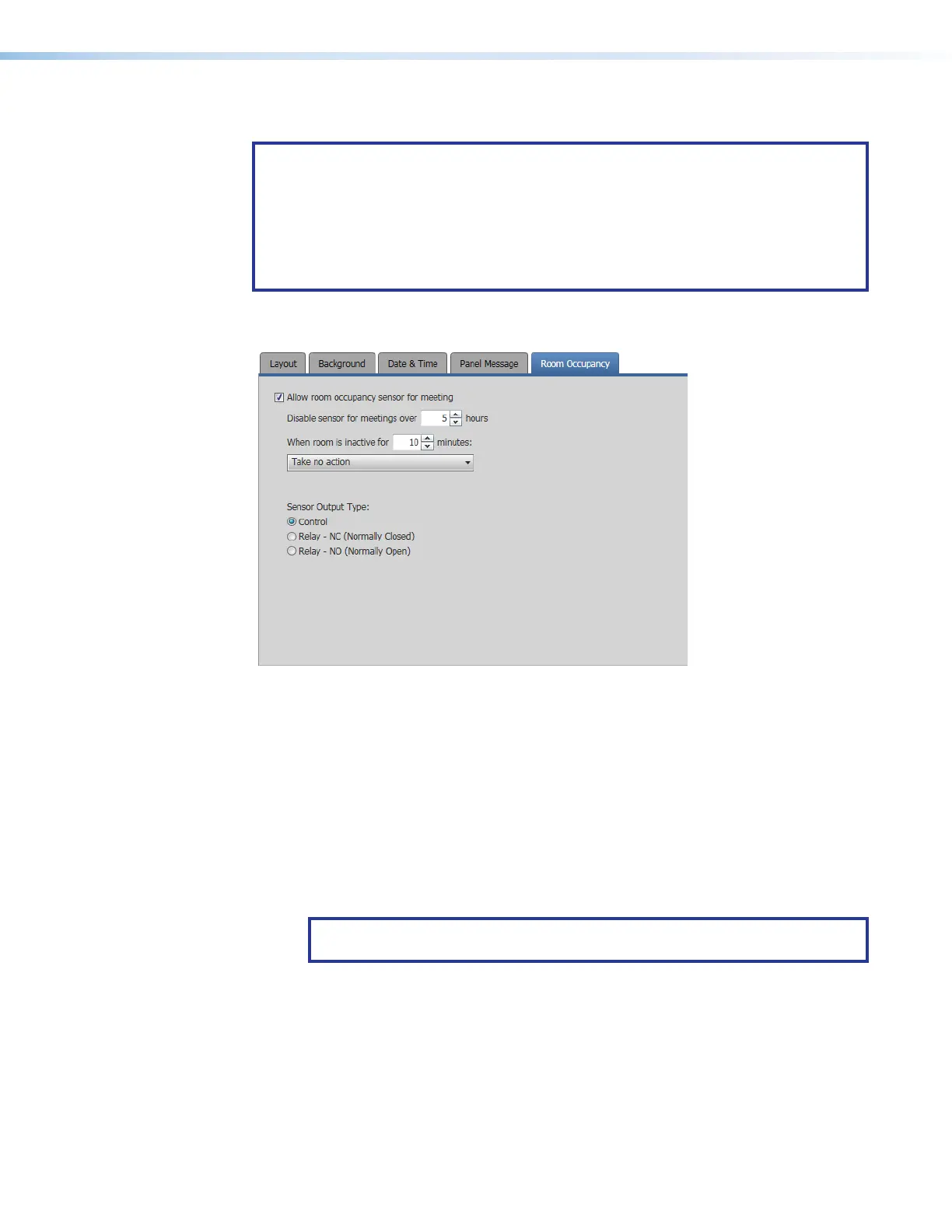 box to enable and disable the use of room occupancy sensors to determine if a meeting