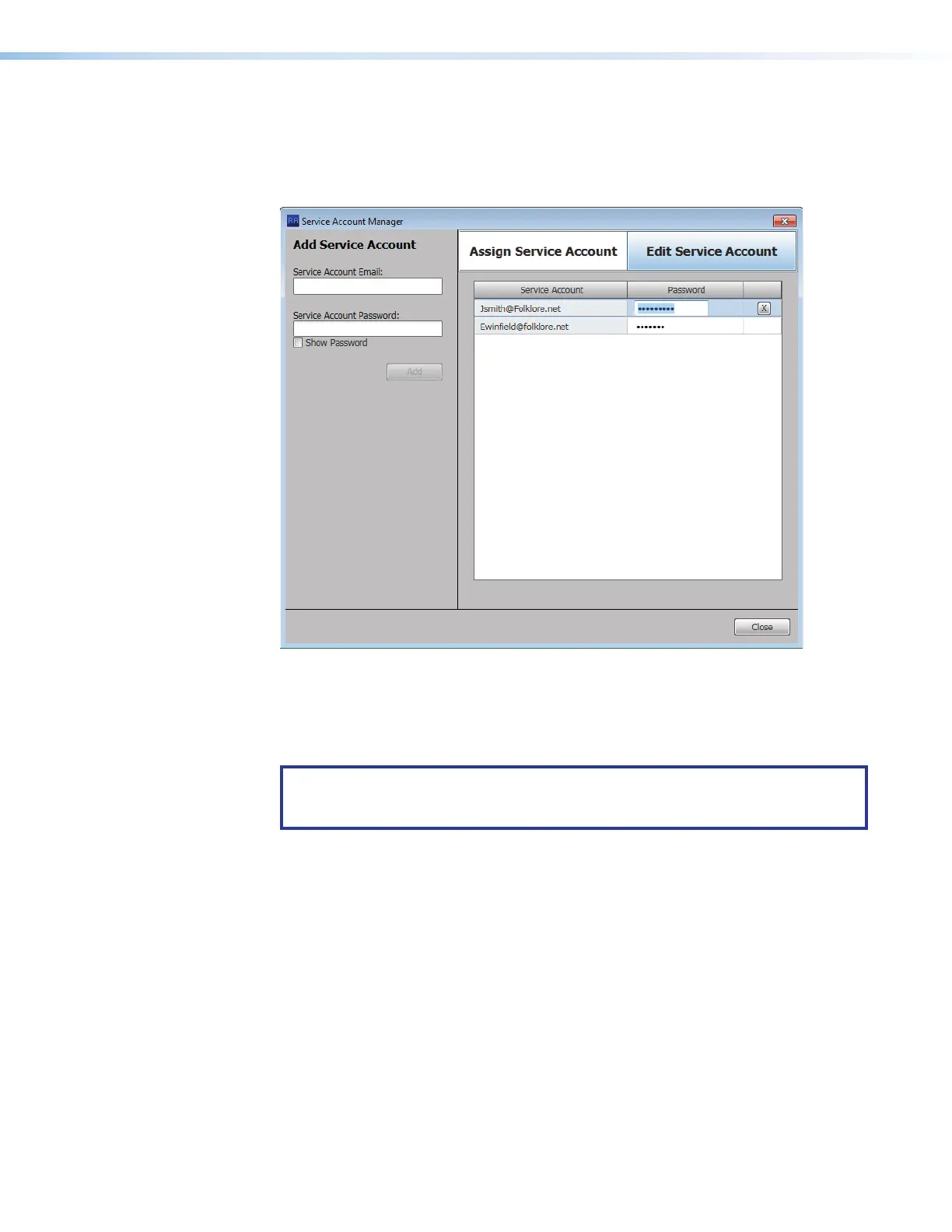Figure 74. Service Account Manager — Edit Service Account