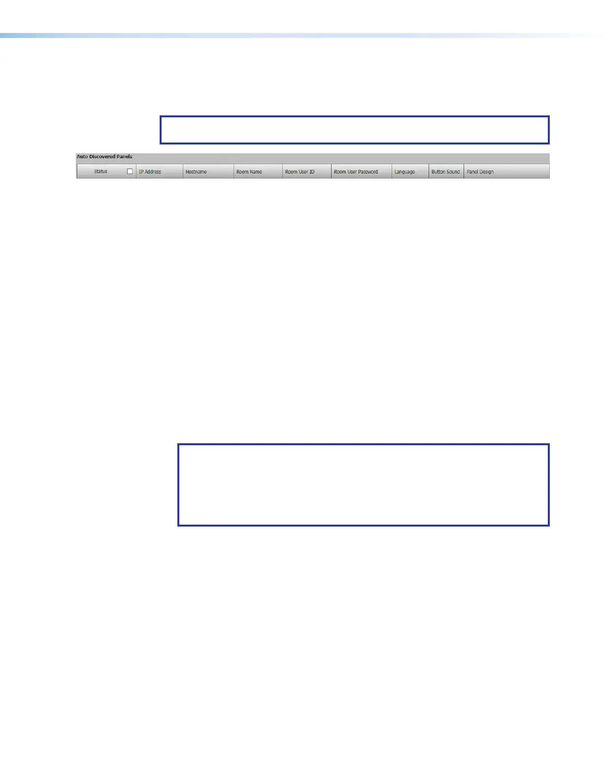 • Status — Use this check box to select individual panels for configuration.