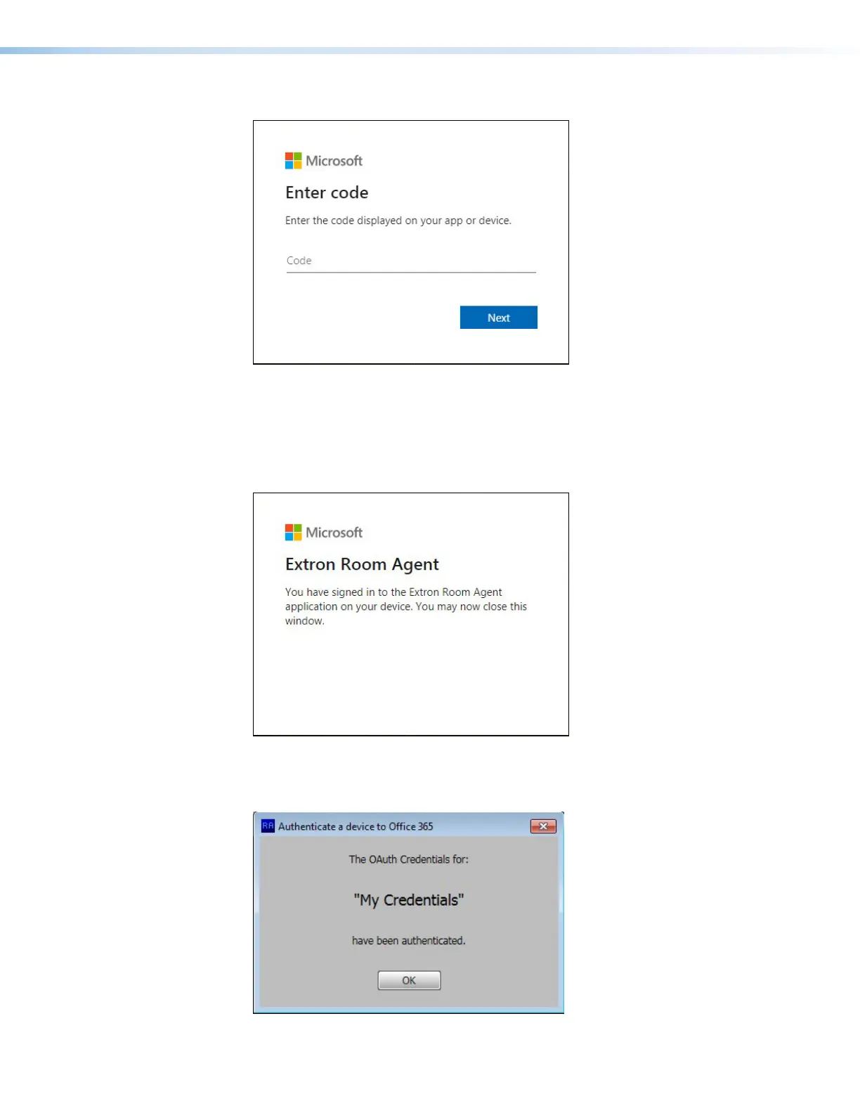11. The Room Agent Authenticate a device to Office 365 dialog box also confirms that the