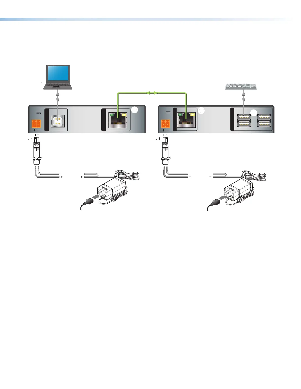 Figure 8. USB Extender Plus T-R Connection with Two External Power Supplies