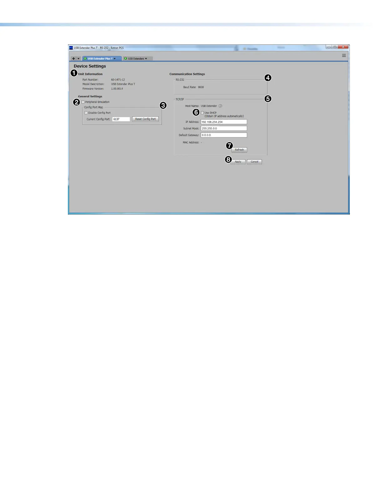 • A USB Extenders line in the Device Directory panel. (The individual USB