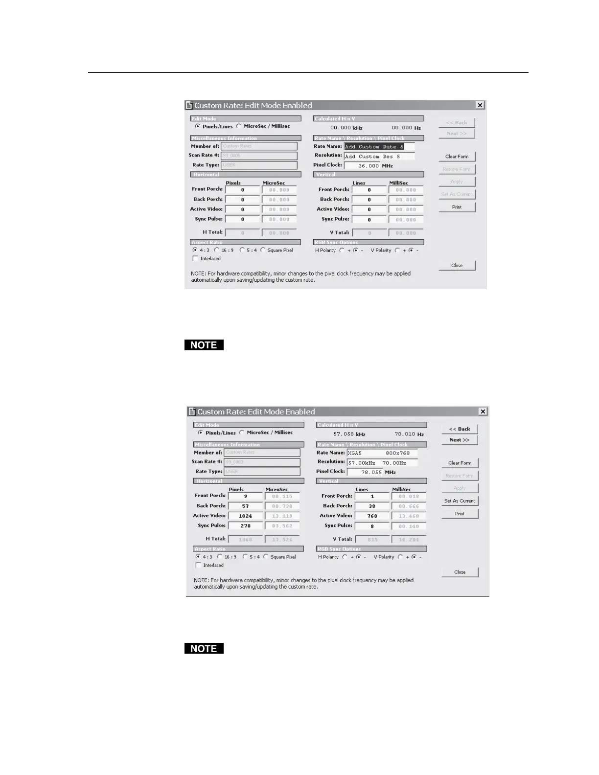 and vertical active video information, rate name and resolution. Select the Apply