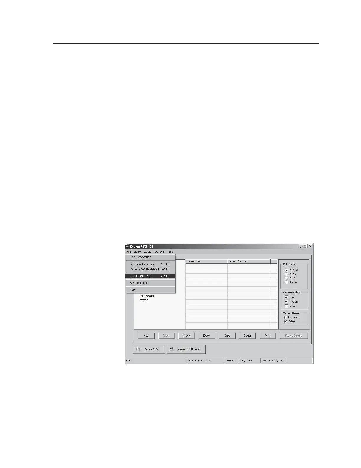 new firmware from the PC to the VTG 400/400D via the video test generator’s