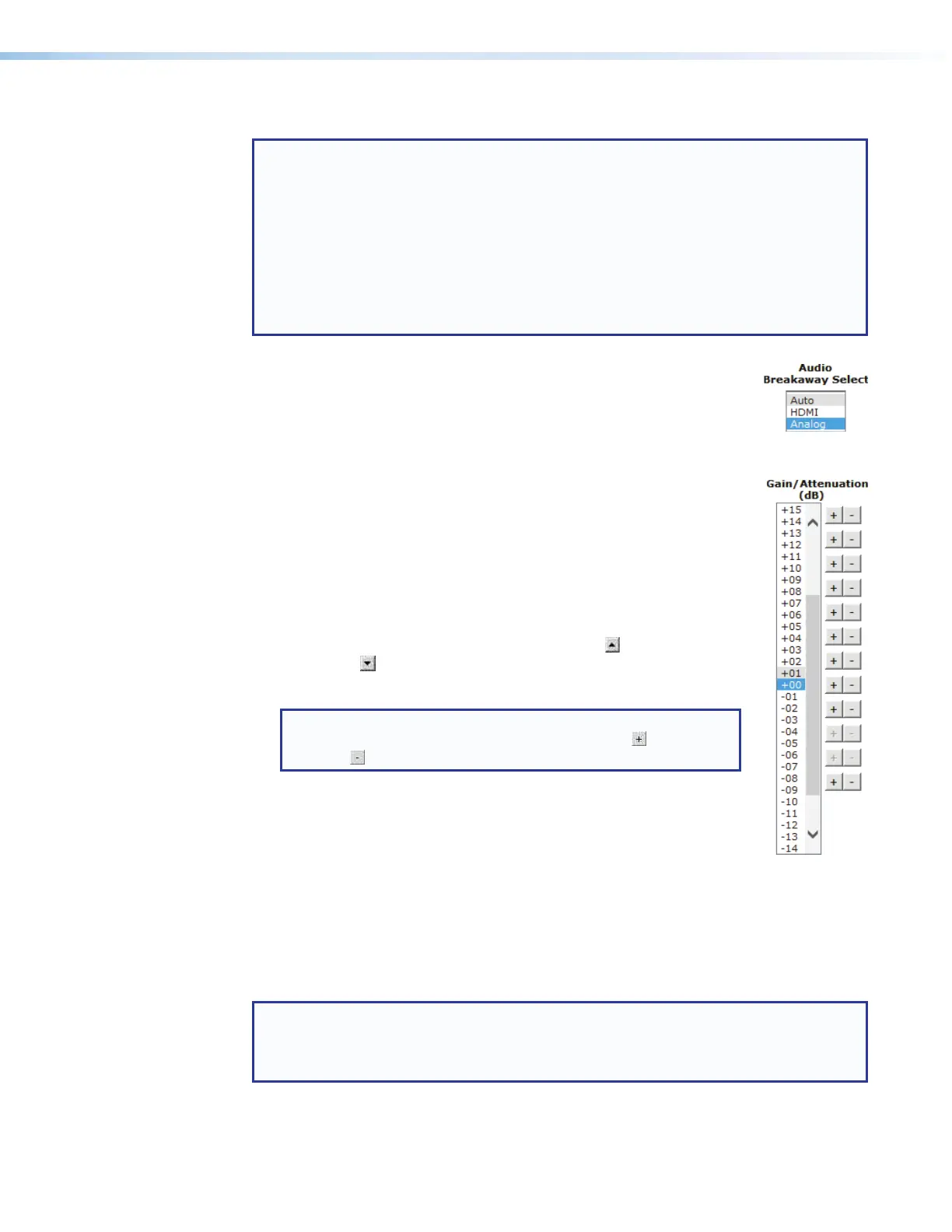 1. Click the Audio Breakaway Select drop-down list for the desired