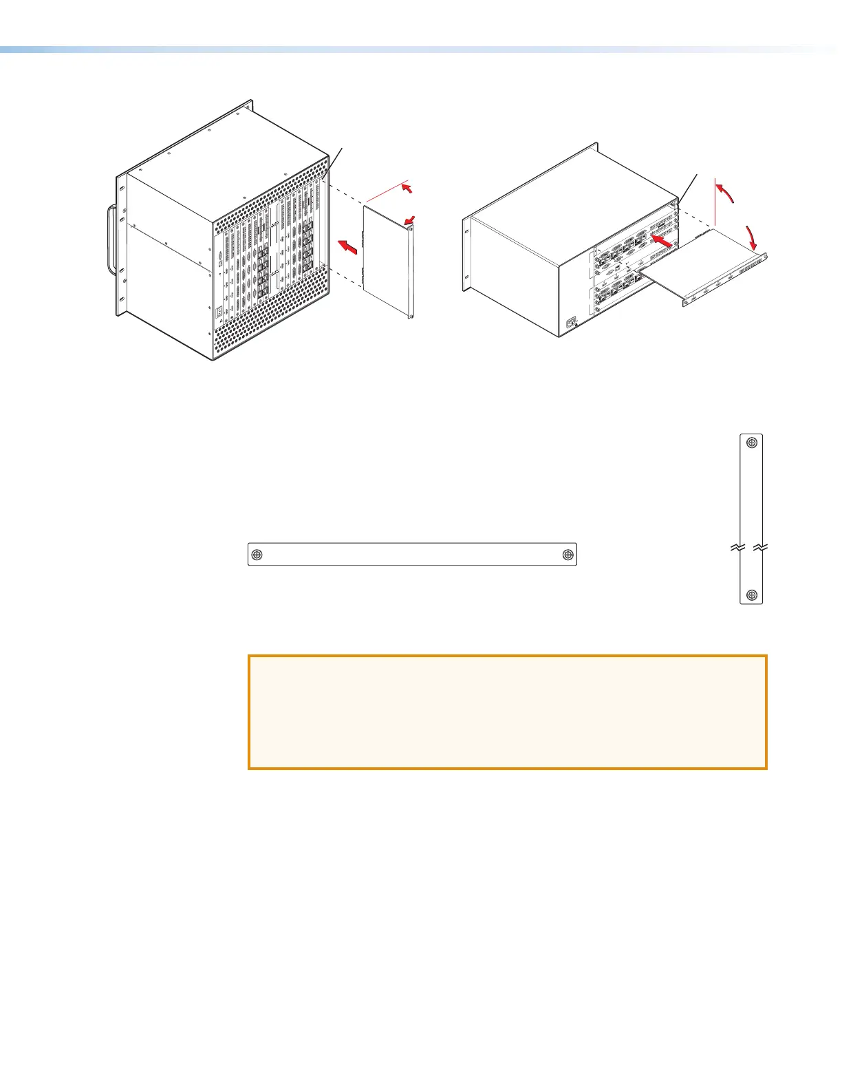 3. Gently slide the board or blank panel into the enclosure. For an input or output