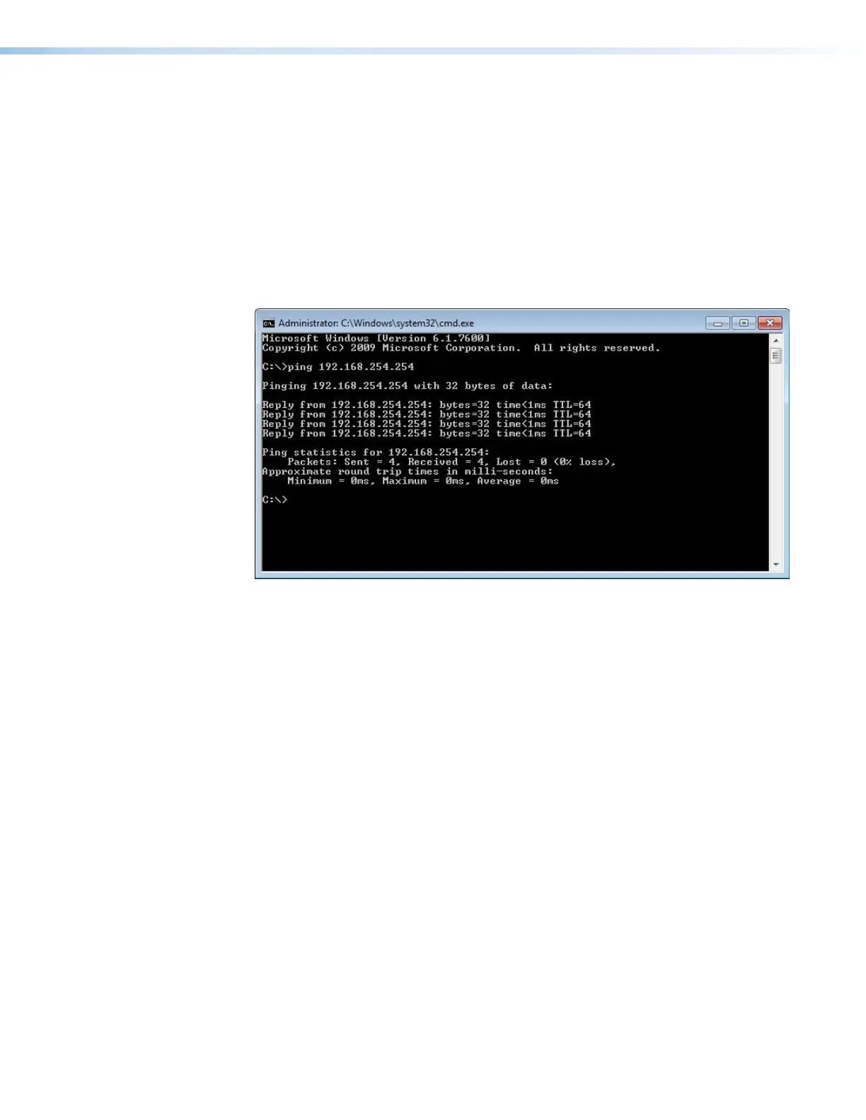 Pinging to Determine the Extron IP Address