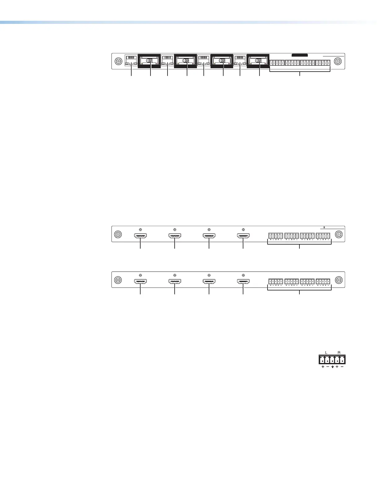 on a compatible Extron fiber optic receiver and this connector. This board uses