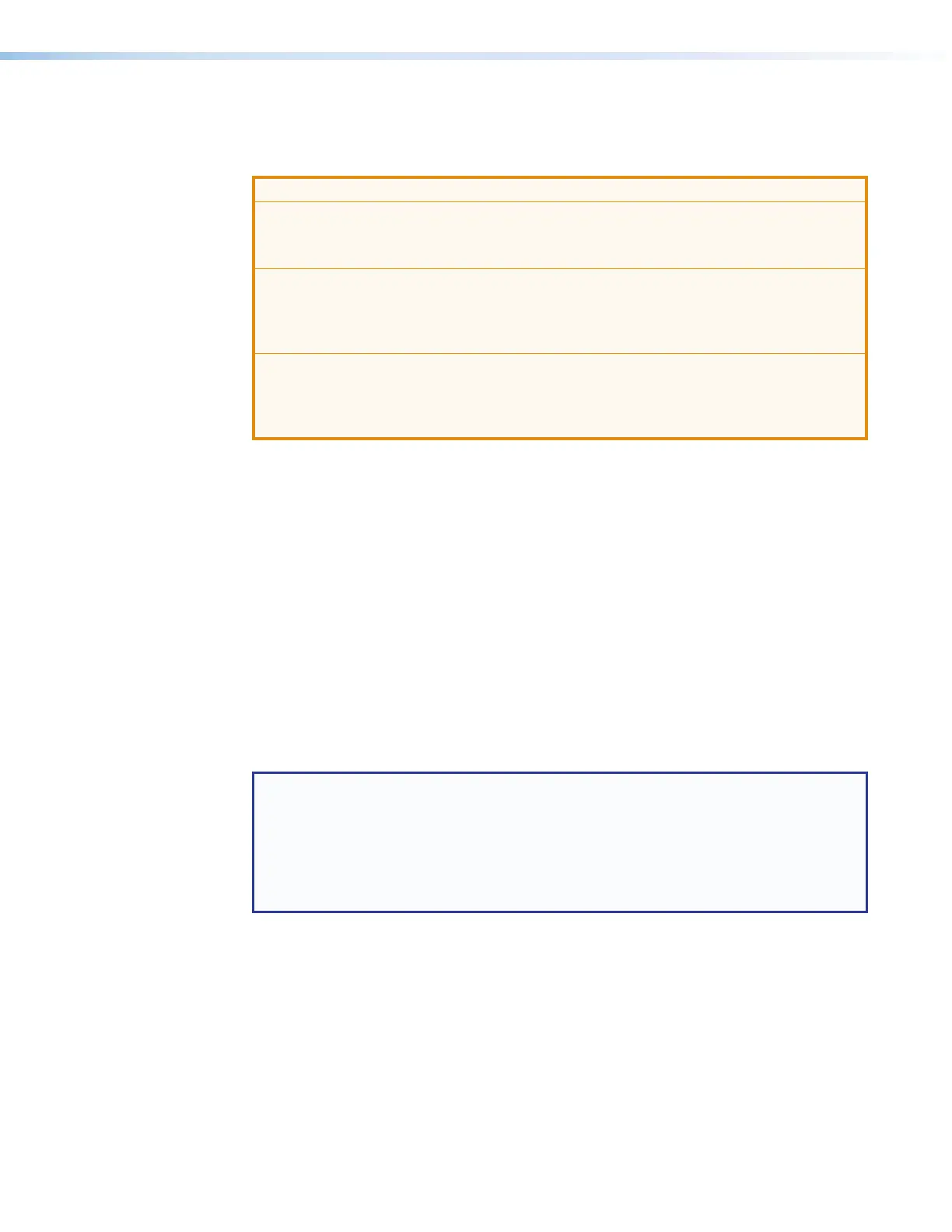 • If not using XTP DTP 24 cables, at a minimum, Extron recommends 24 AWG, solid