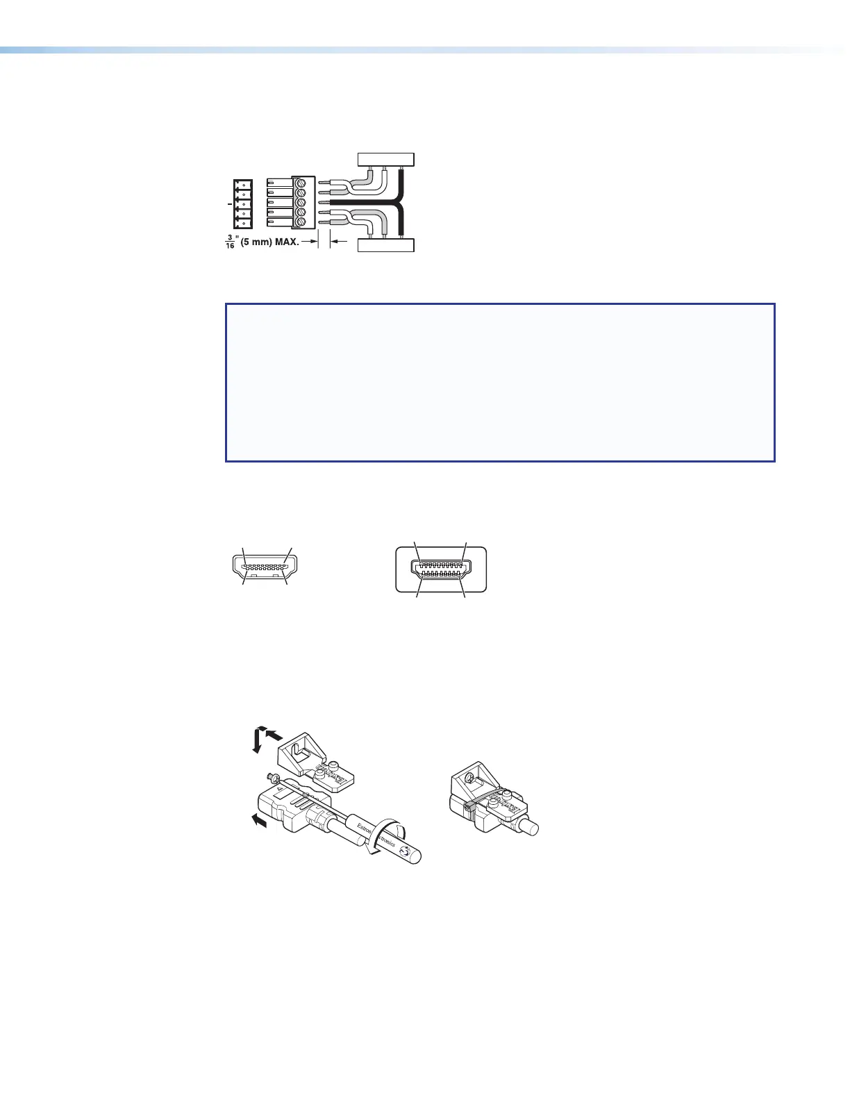 • If the stripped section of wire is shorter than 3/16 inch, wires can be easily pulled