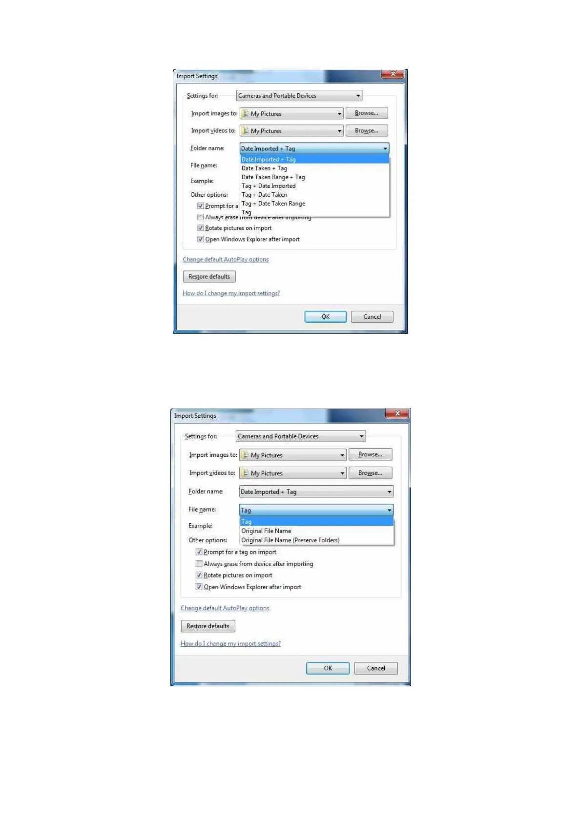 Tag\Tag xxx.jpg. This will rename all imported files to the tag plus a number. Select original