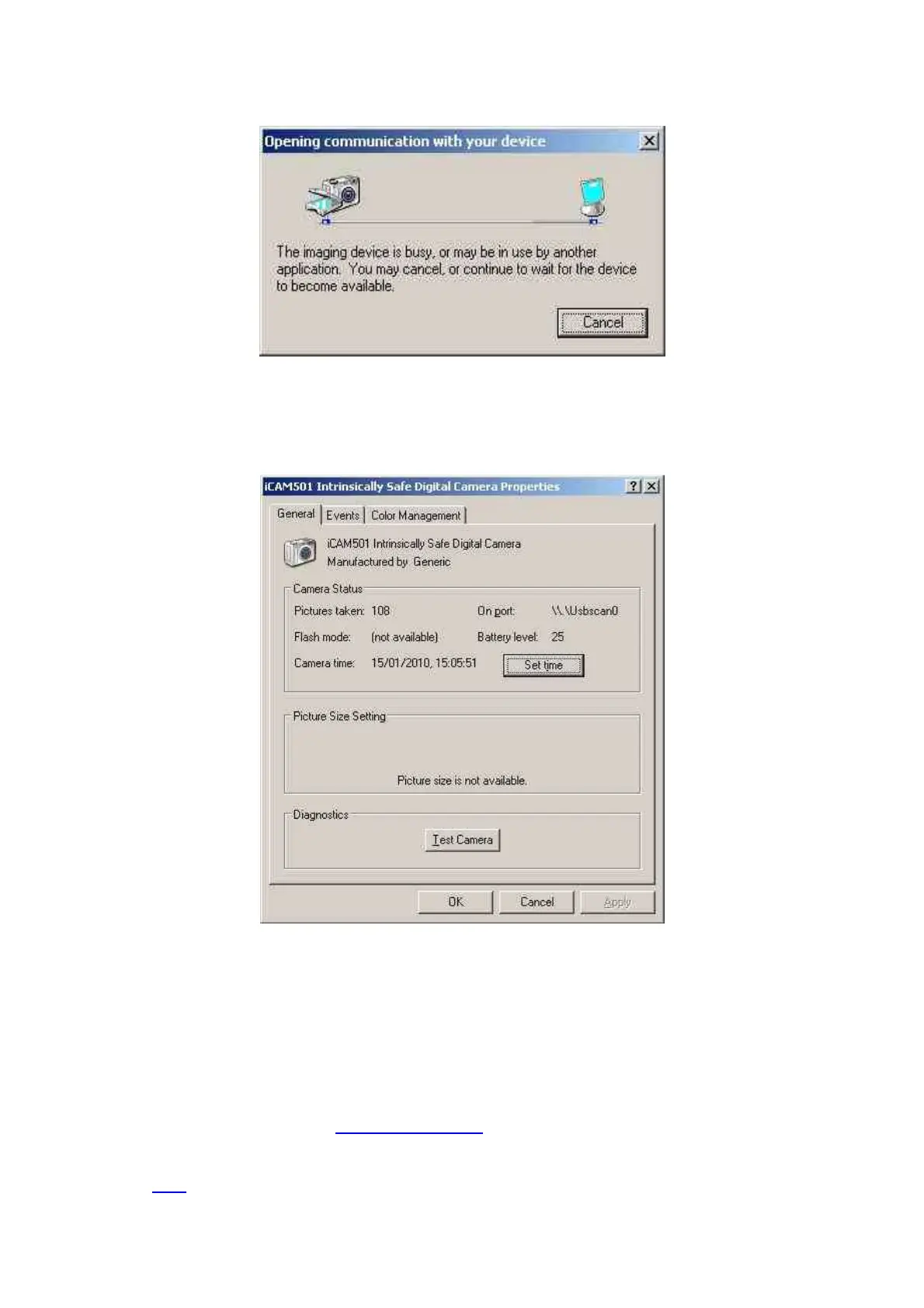 For Windows Vista and all versions of Windows 7, it is necessary to download the iCAM50x