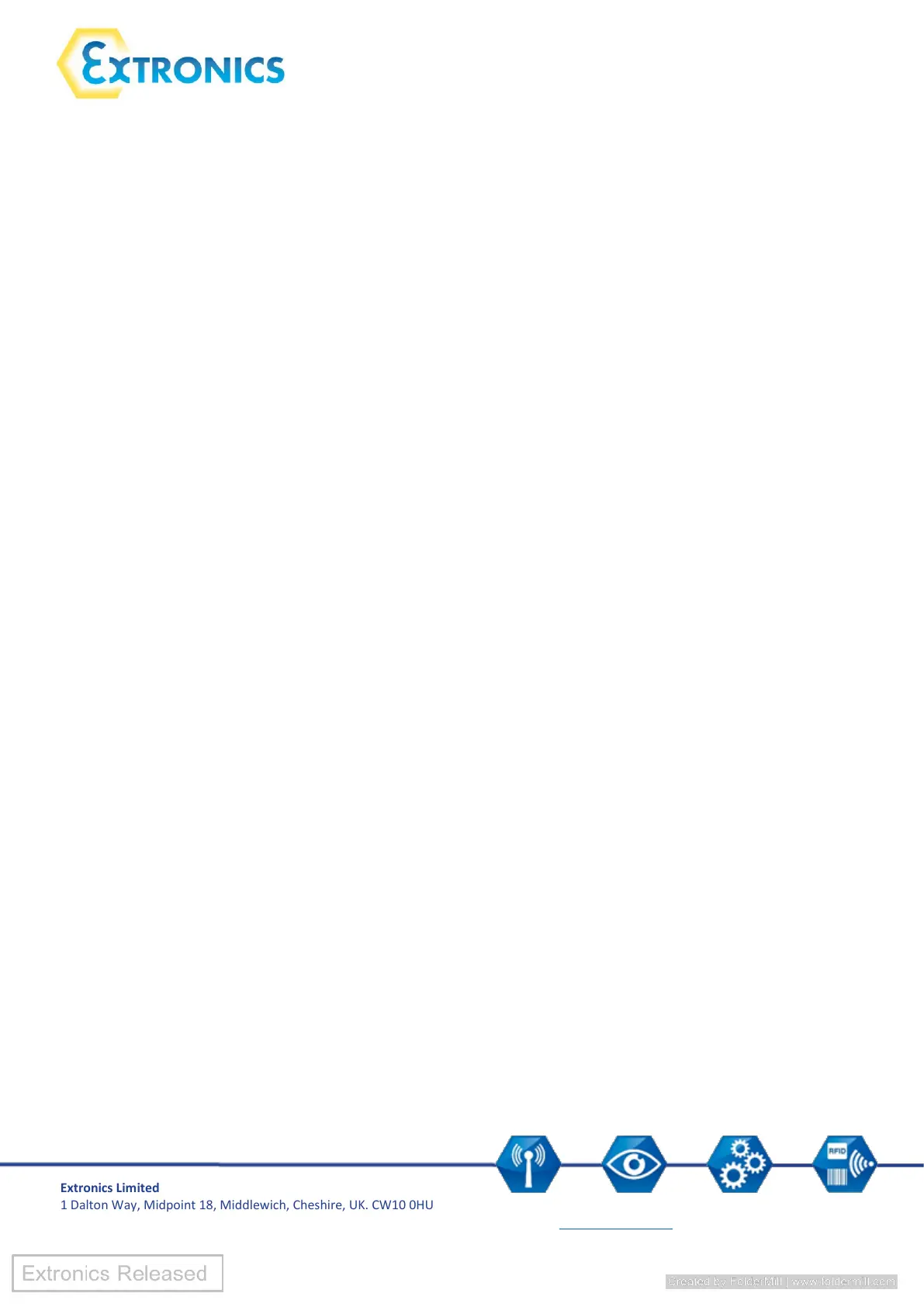 Tel: +44 (0) 845 277 5000 Fax: +44 (0)845 277 4000 E-mail: info@extronics.com Web: www.extronics.com 8