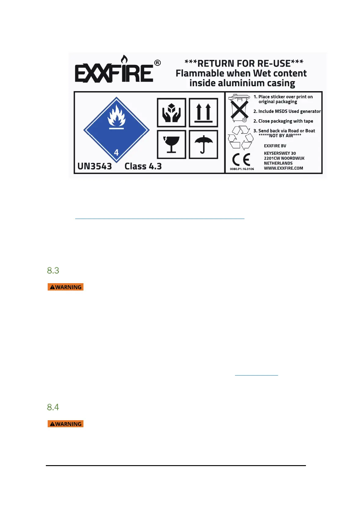 returned to the distributor of the applicable country (see a list at www.exxfire.com).