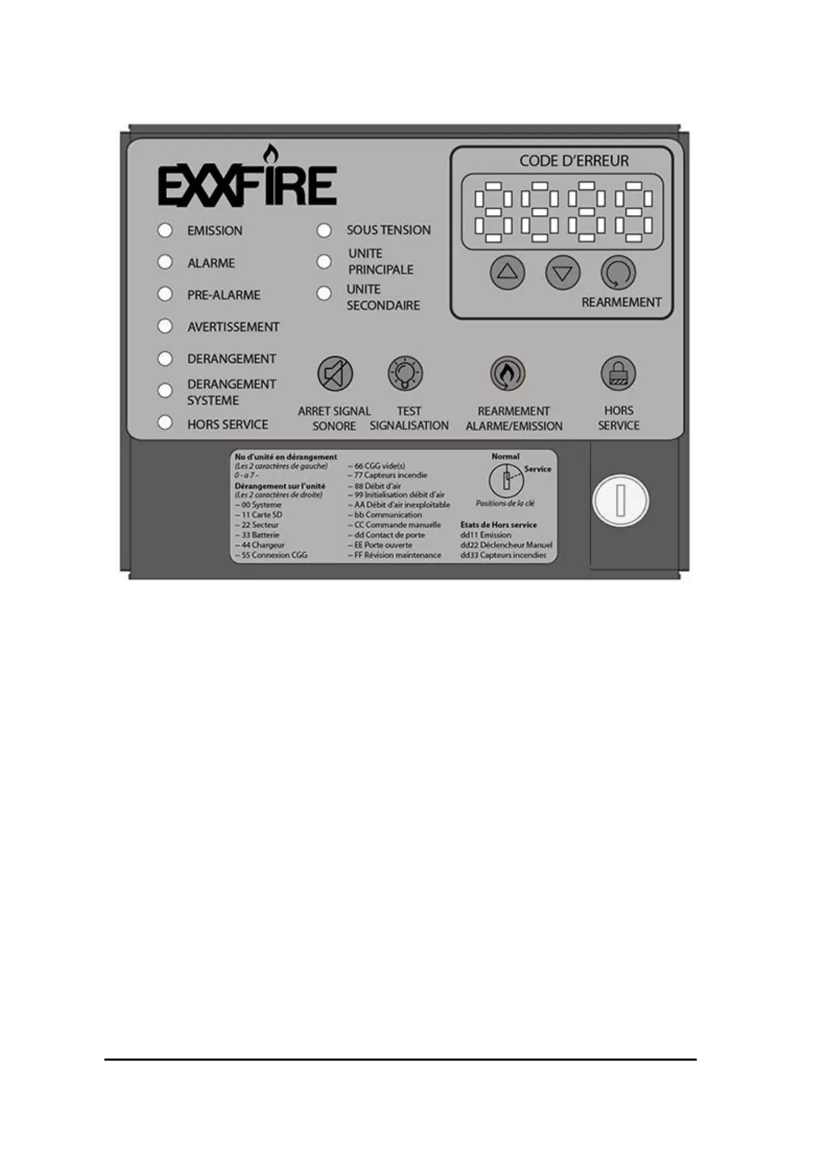 Figure 60 User Interface panel and key switch (displayed in normal position) in French