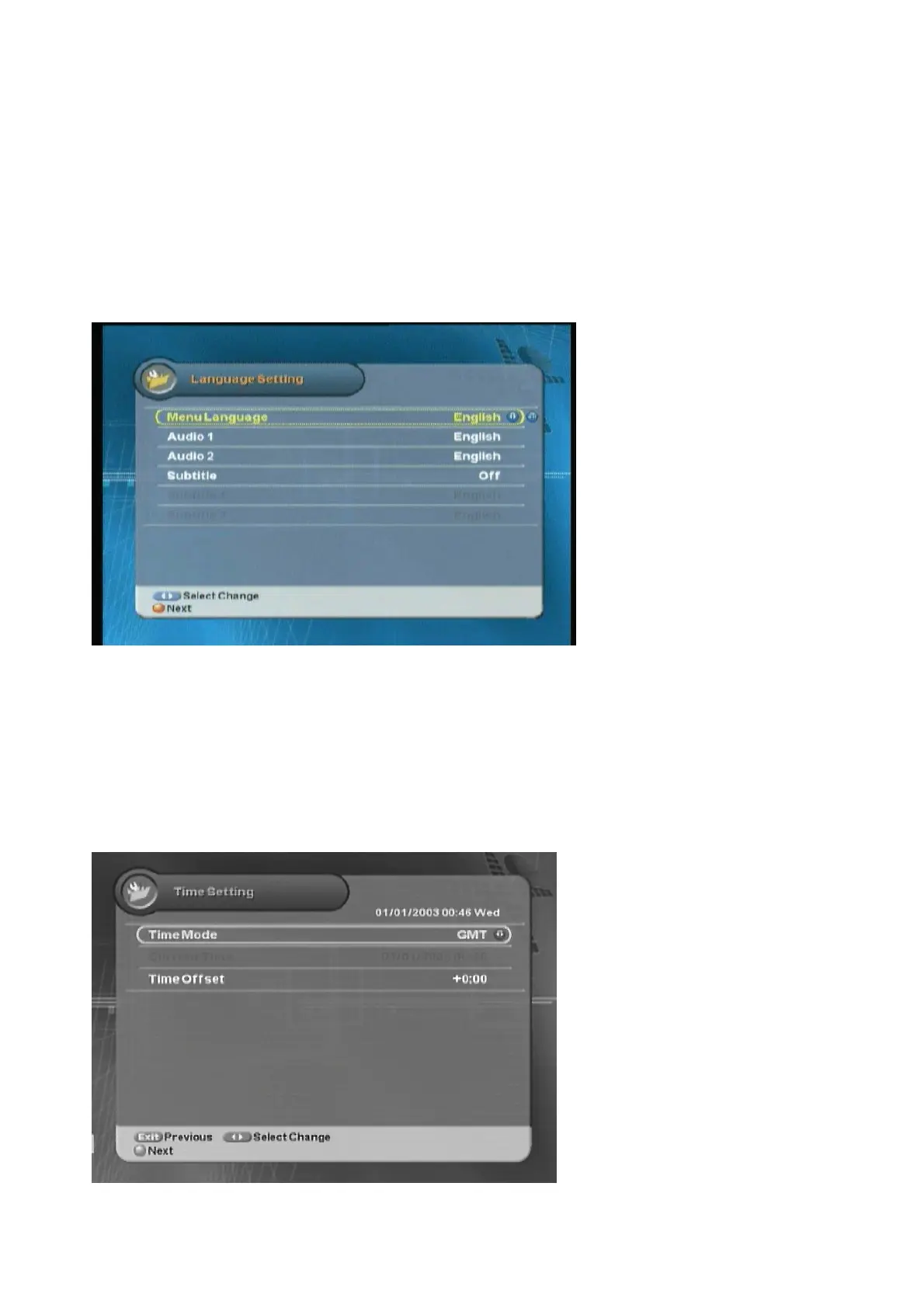 You can select Menu Language, Audio, and the Subtitled Language.