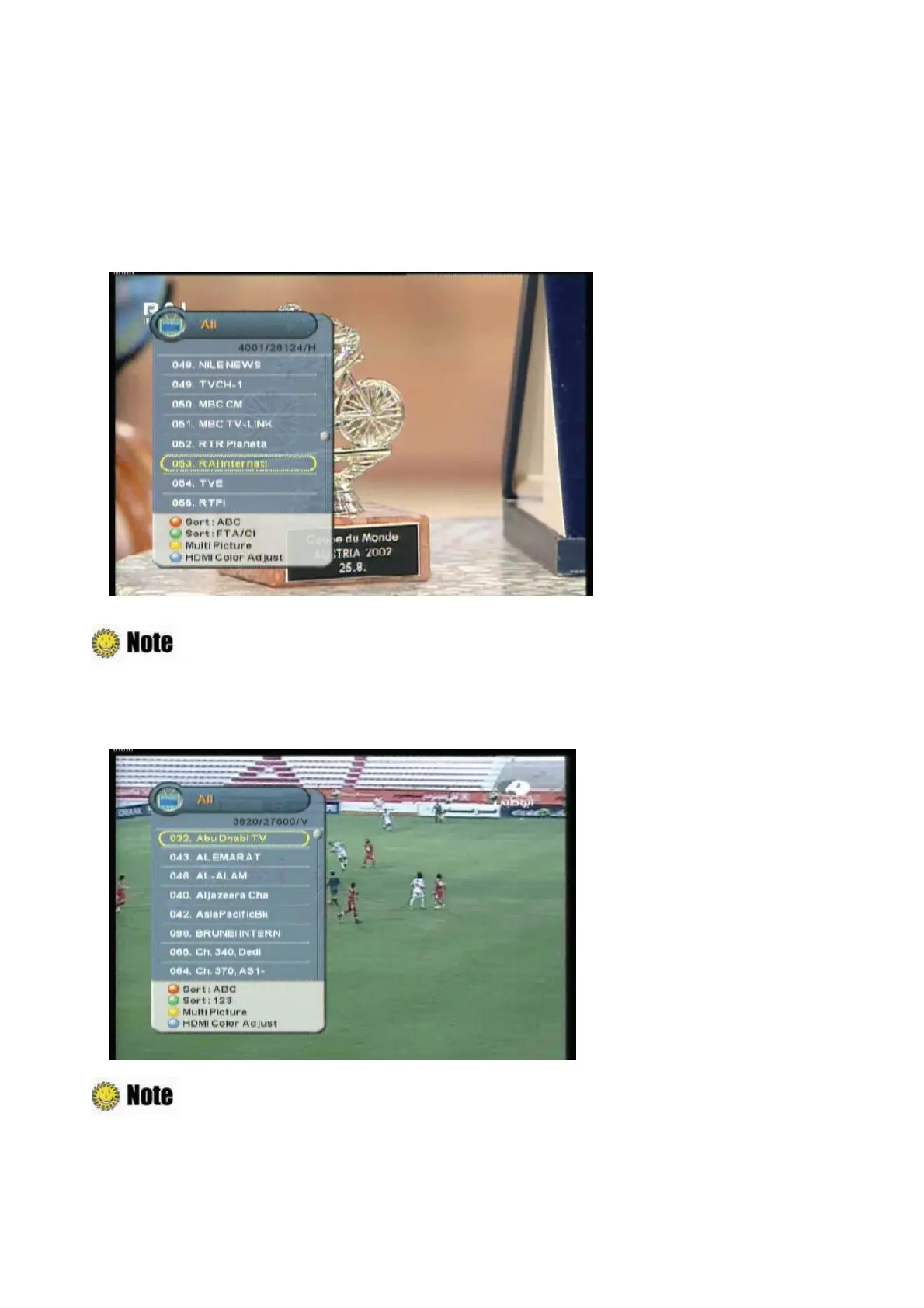 2. Press the “Red” button to sort the channel lists by alphabetic order.