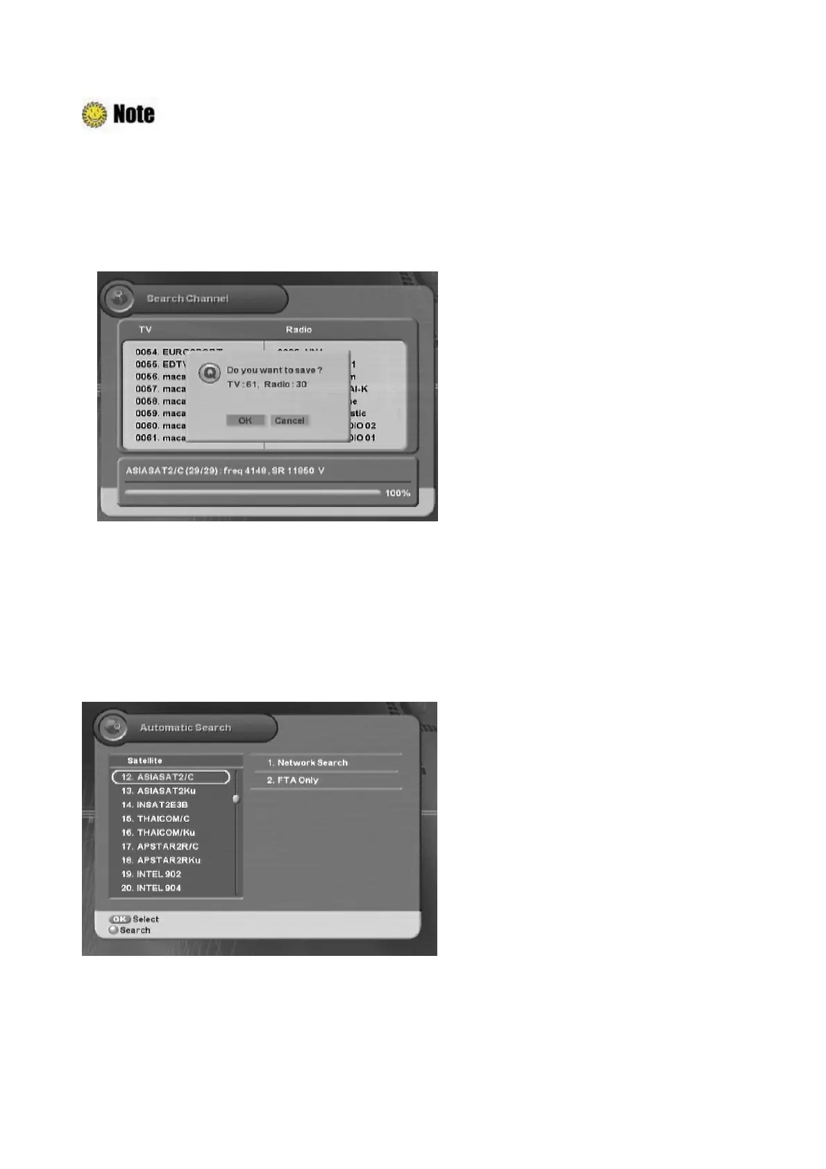 After antenna setting, you can automatically search for satellites.