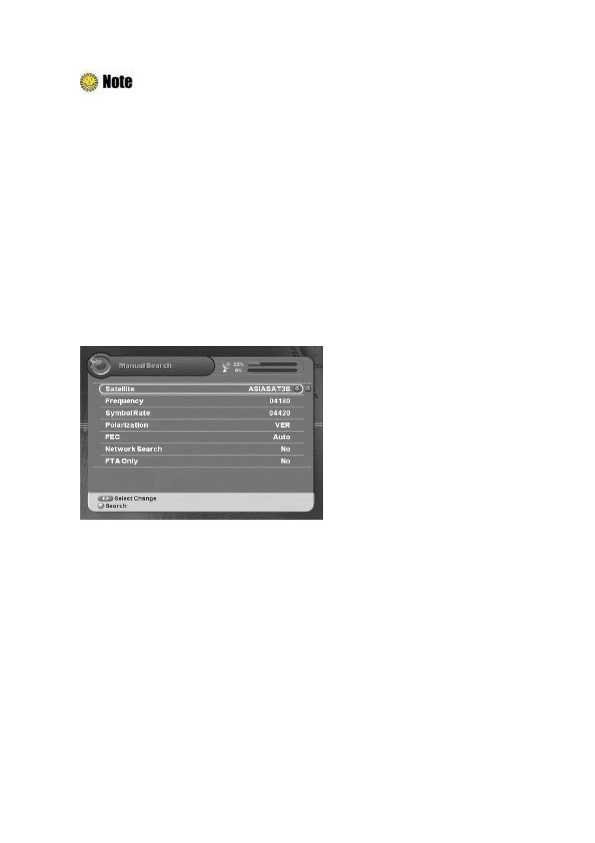After antenna setting, you can search channel(s) from the selected satellite if you know the