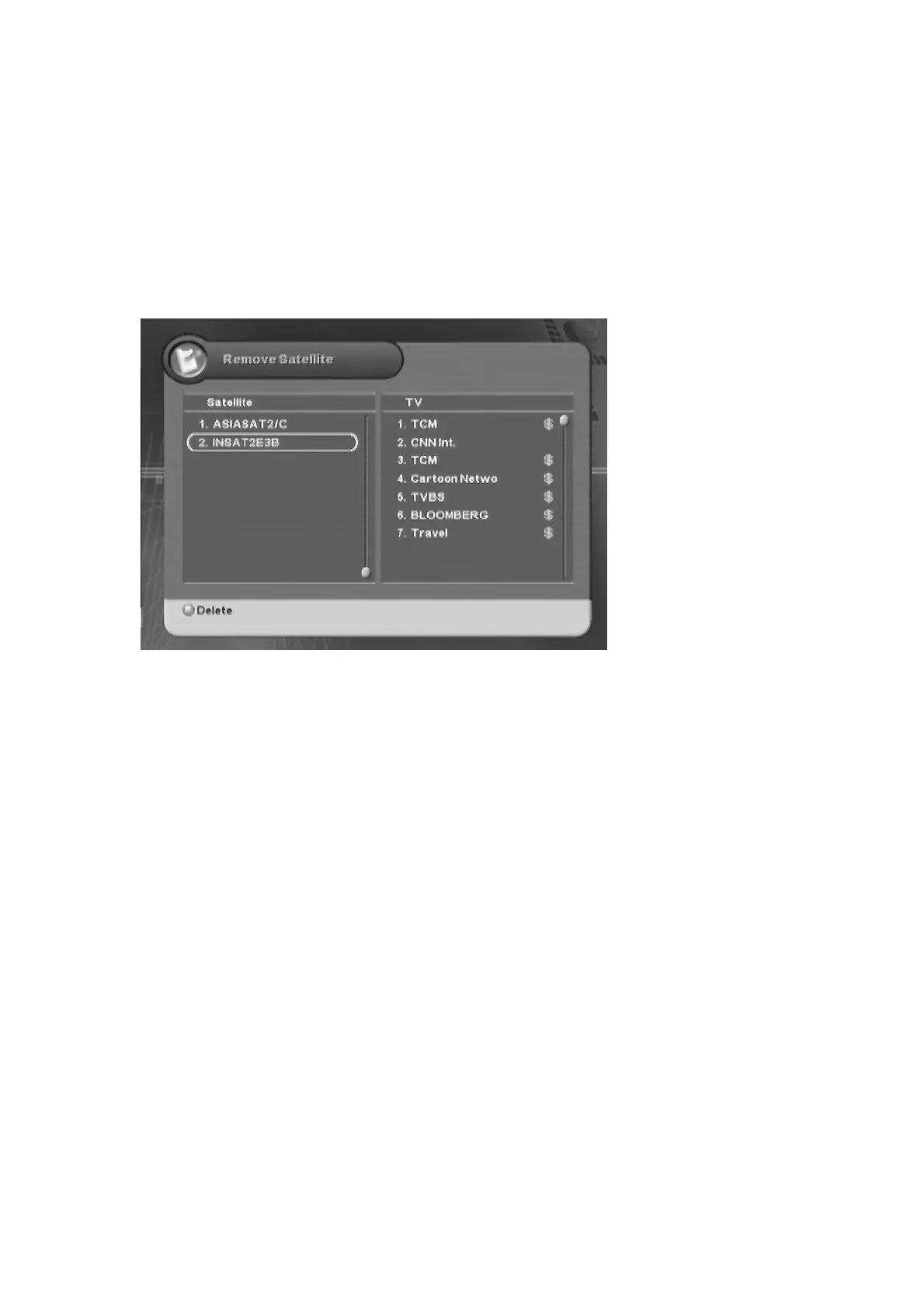 3. Press the “Red” button to delete the channel(s) for the satellite.