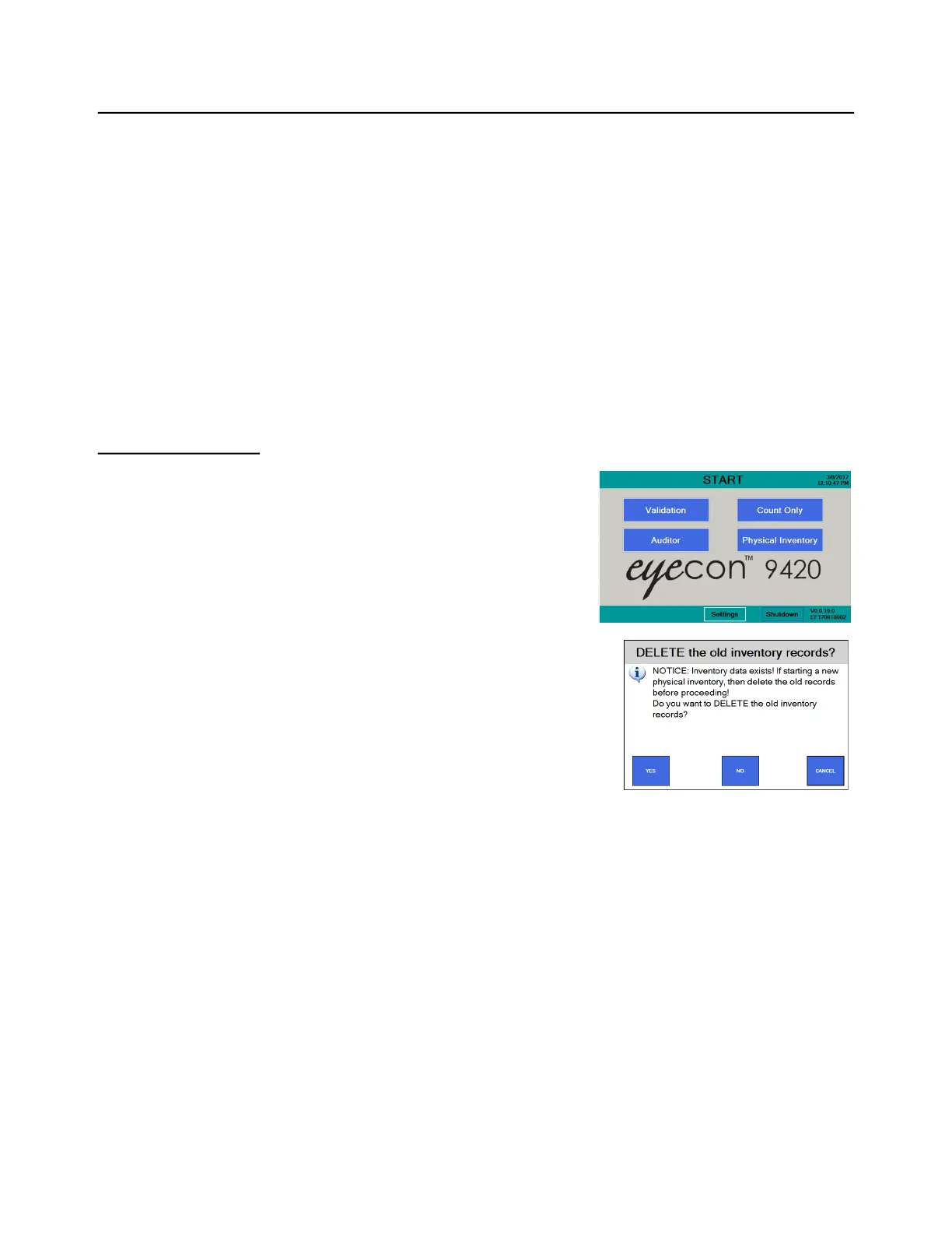 Physical inventory counts are performed on the Eyecon and saved to a database. The