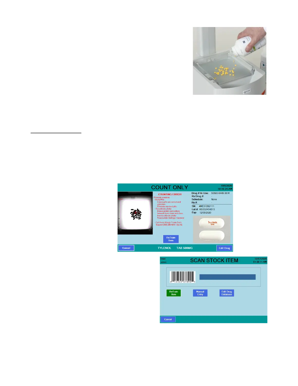 If you see a count error screen (as shown below) you can press the ReTrain Item