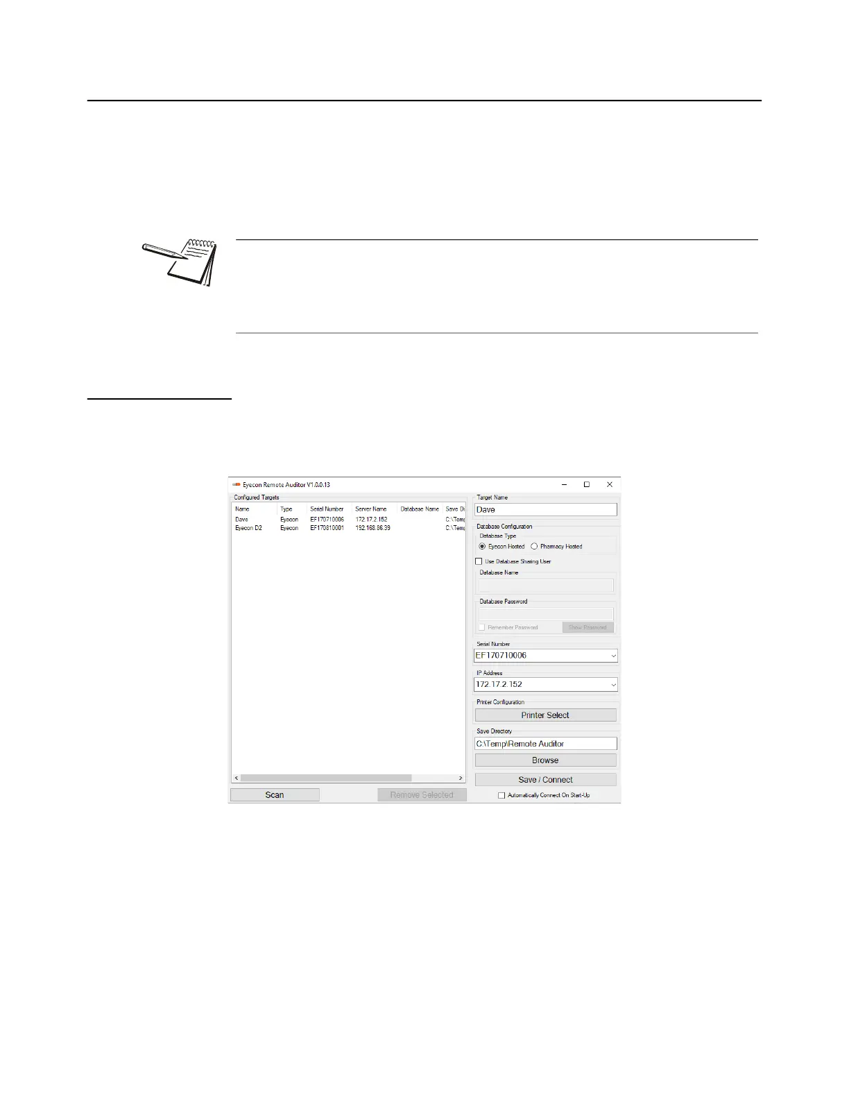 example shows how to configure for Eyecon hosted database.