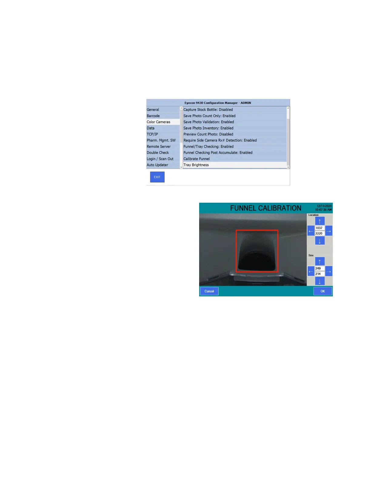- The Eyecon will display “Calibrating Funnel” for up to a minute while it