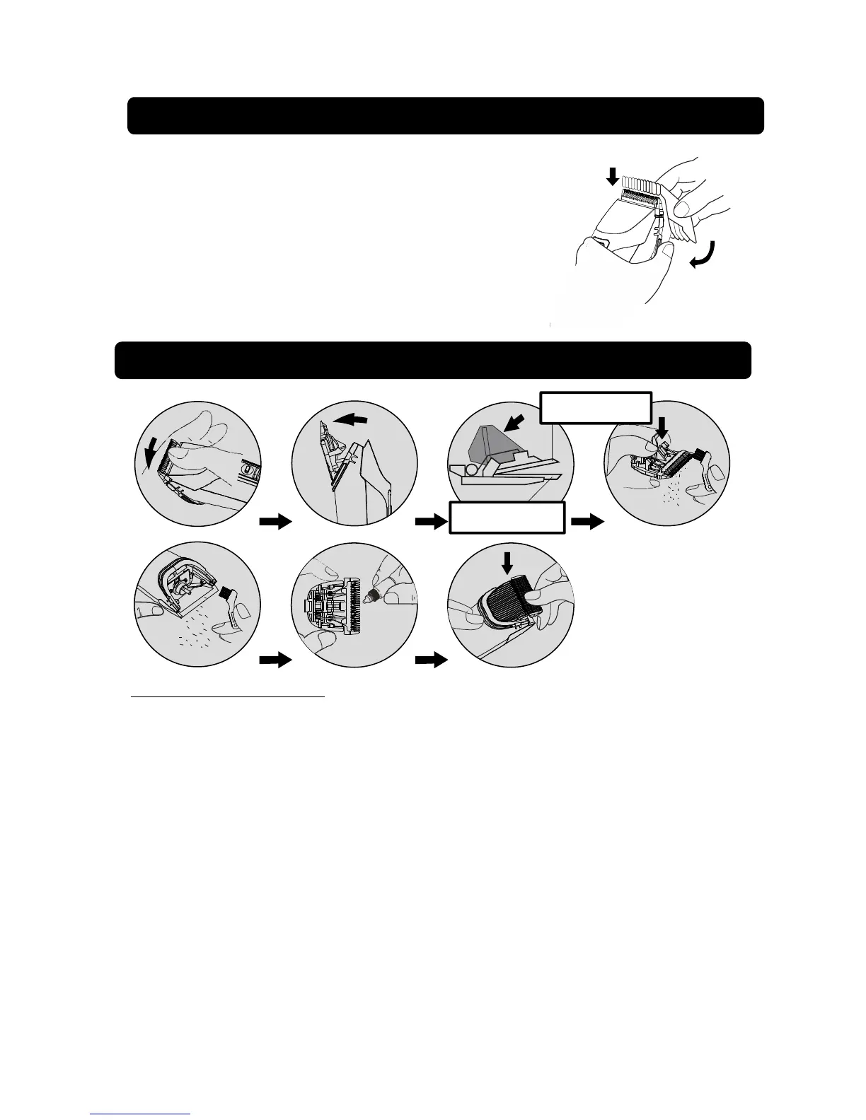 2. Togliere il pettine seguendo le istruzioni della figura qui sopra. Fare attenzione a non lasciare cadere le lame