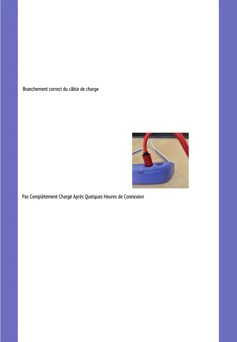 Si votre eyepower red ne montre pas une lumière bleue constante (complètement chargé) après