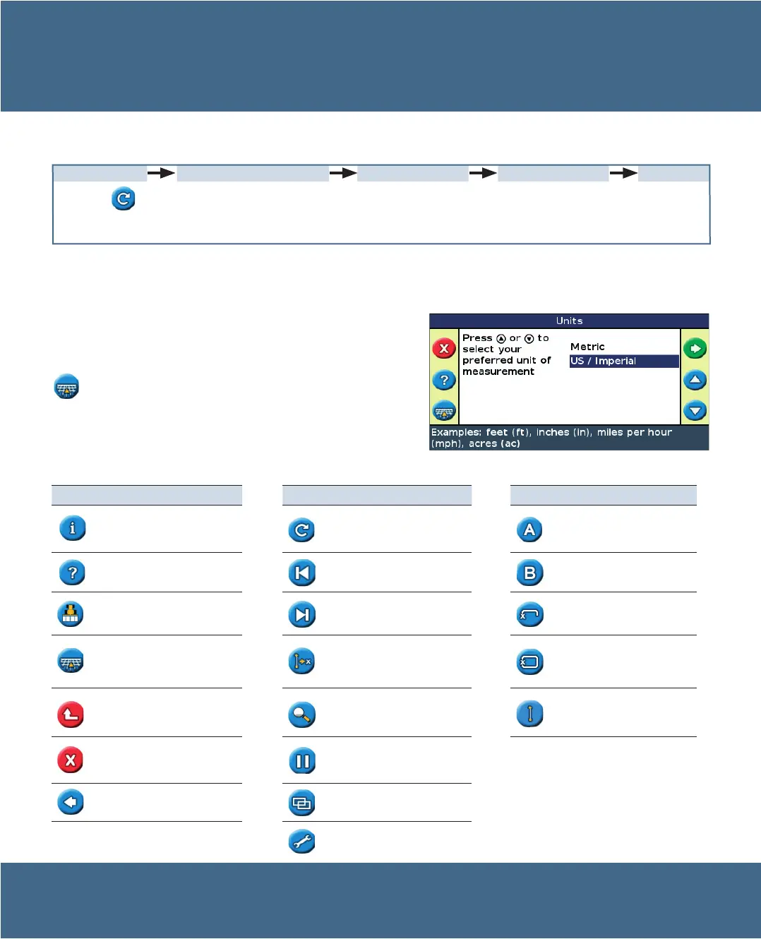 Turns on or off coverage logging Nudge guidance line right Start headland