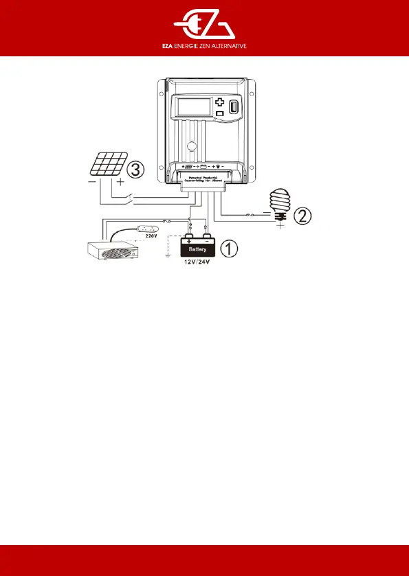 les installer directement sur la batterie. Ne pas connecter avec la borne du régulateur.