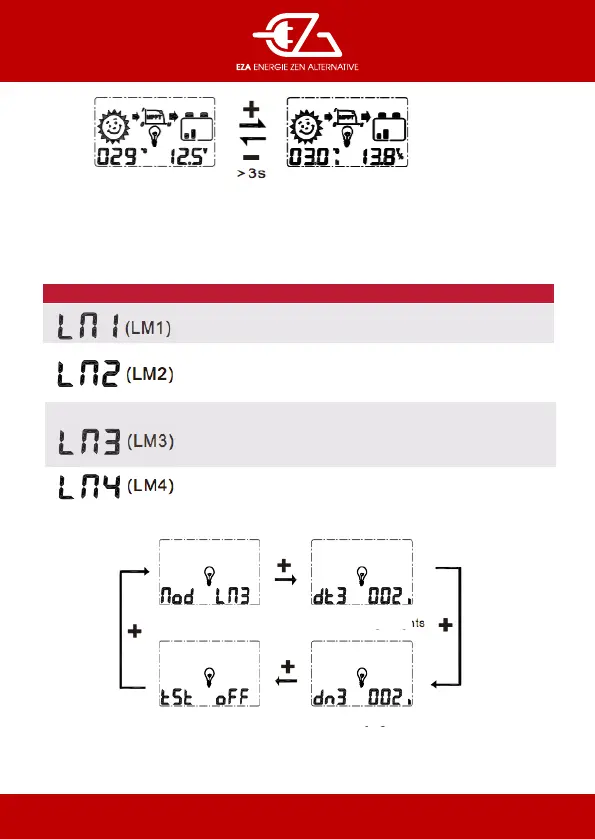 appuyez brièvement sur les touches + ou – pour sélectionner LM 1. 2. 3 ou 4, puis appuyez lon-guement sur